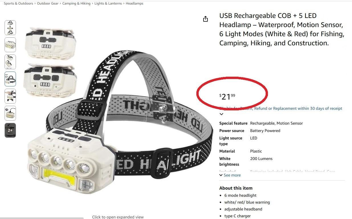 XPE+4*LED+COB+6 COLORED LED(3 RED/3 BLUE) LIGHTWEIGHT USB-C CHARGING- FOR HOME NIGHT LIGHT, OUTDOOR CAMPING, FISHING & HIKING