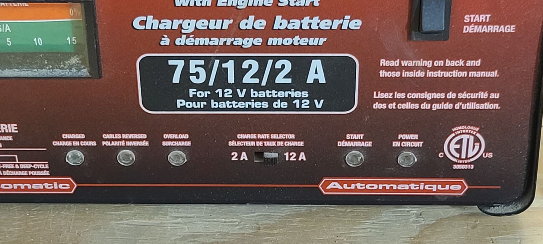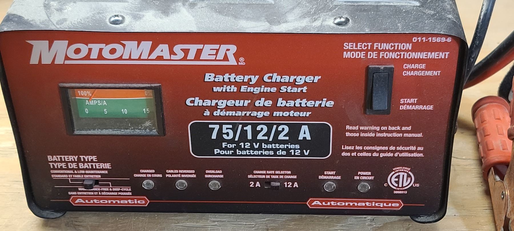 MOTOR MASTER BATTERY CHARGER WITH START BOOST 75/12/2AMPS