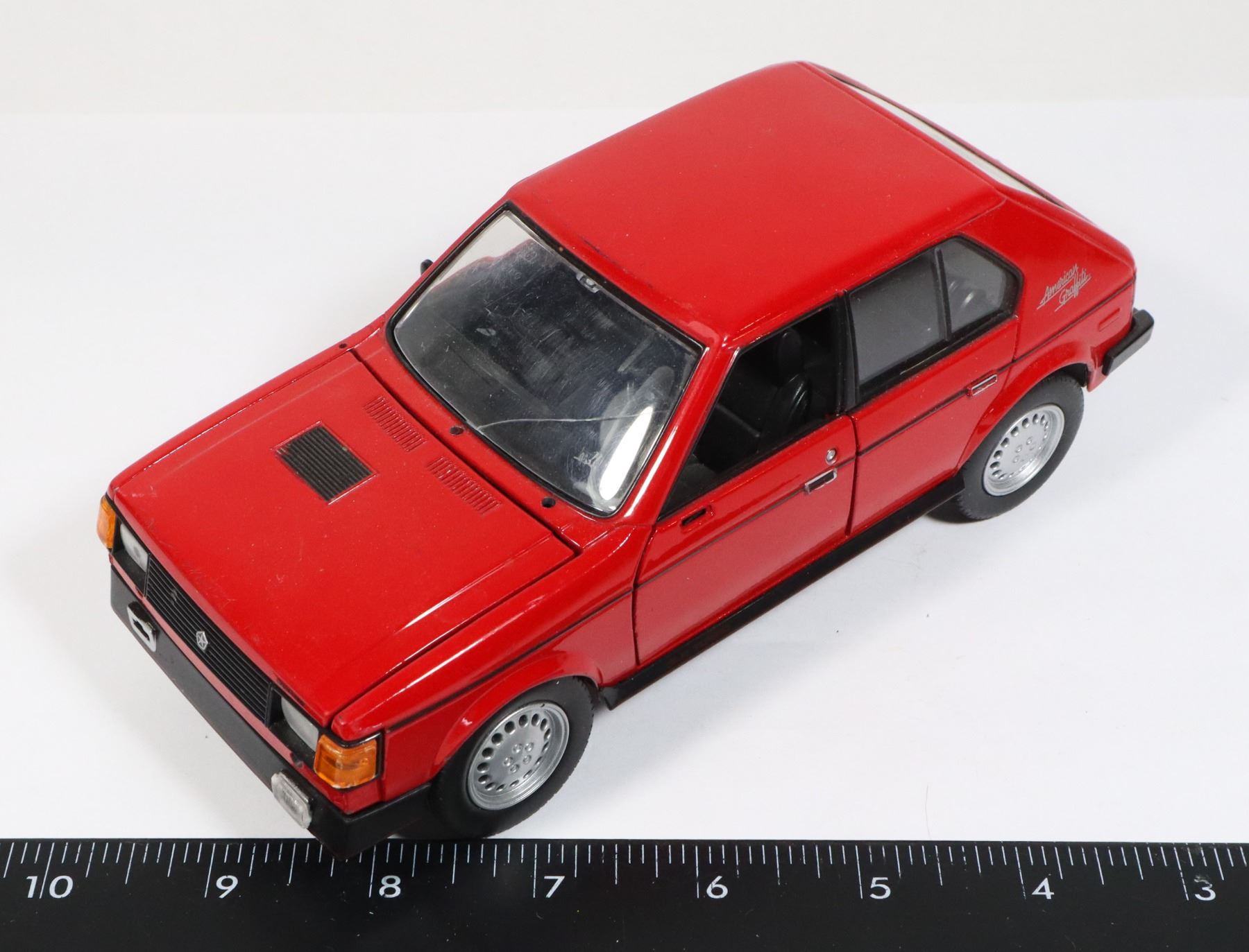 DIE CAST CAR. CRACK IN WINDSHIELD, MISSING A FOG LIGHT AND DRIVERS SIDE MIRROR