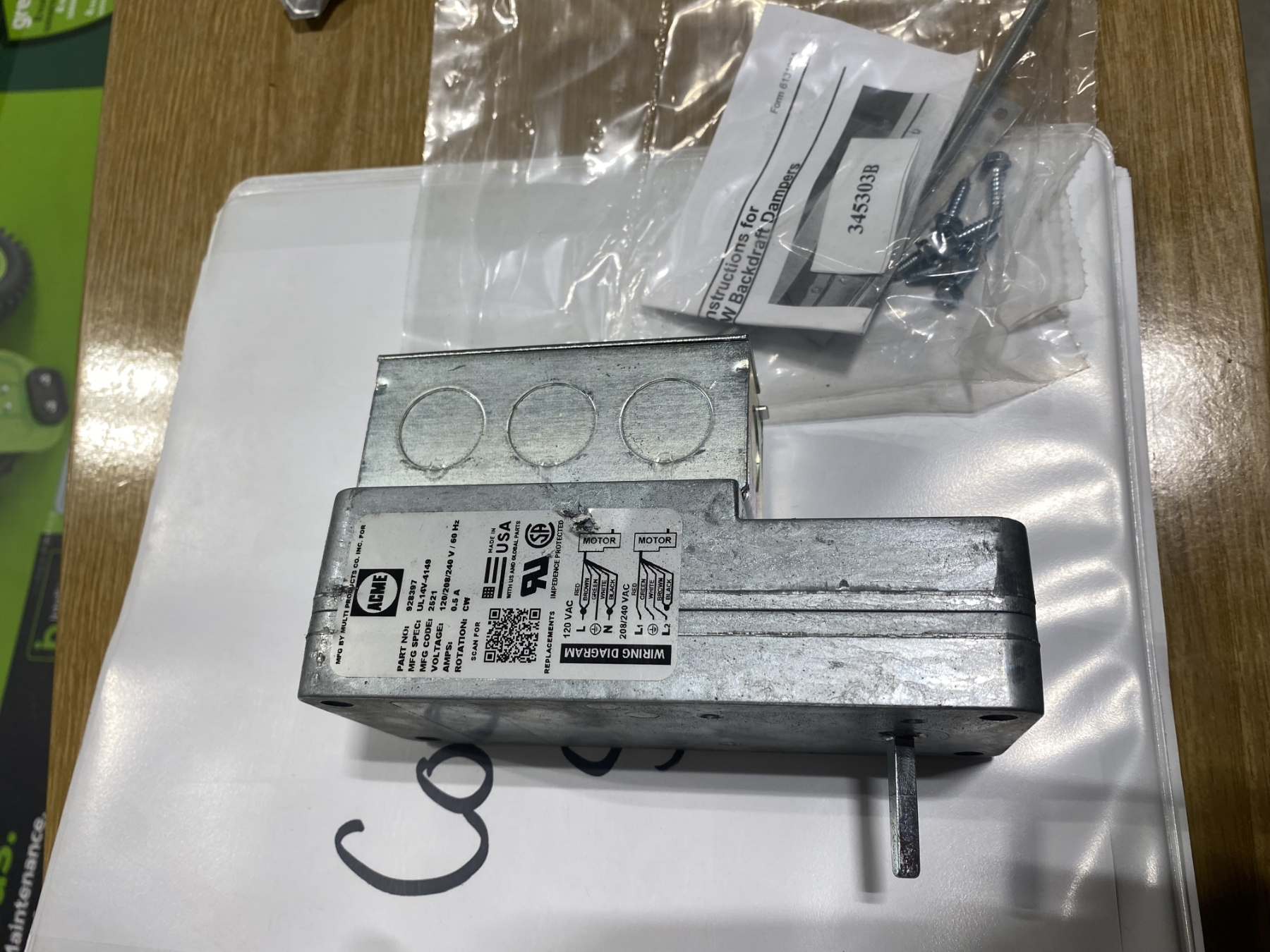 MOTORIZING BACKDRAFT DAMPER WITH PARTS