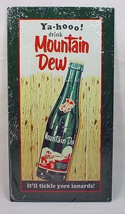 MOUNTAIN DEW YA-HOOO METAL ADVERTISING SIGN - Approx. 8.5" x 16"