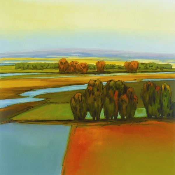 "MOUNTAIN MORNING SKY" by Don Bradshaw is a wonderful contemporary landscape. The geometric shapes and colors create a unique prospective that carries the viewer's eye to the distant horizon. "Mountain Morning Sky" is a limited edition lithograph and is sure to be a strong addition to any art collectors home.