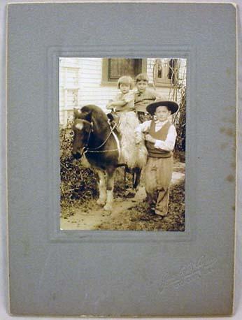 MOUNTED PICTURE OF KIDS ON PONY - 1 W/ WOOLY CHAPS
