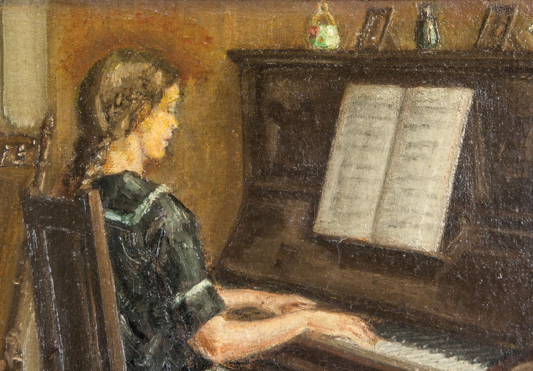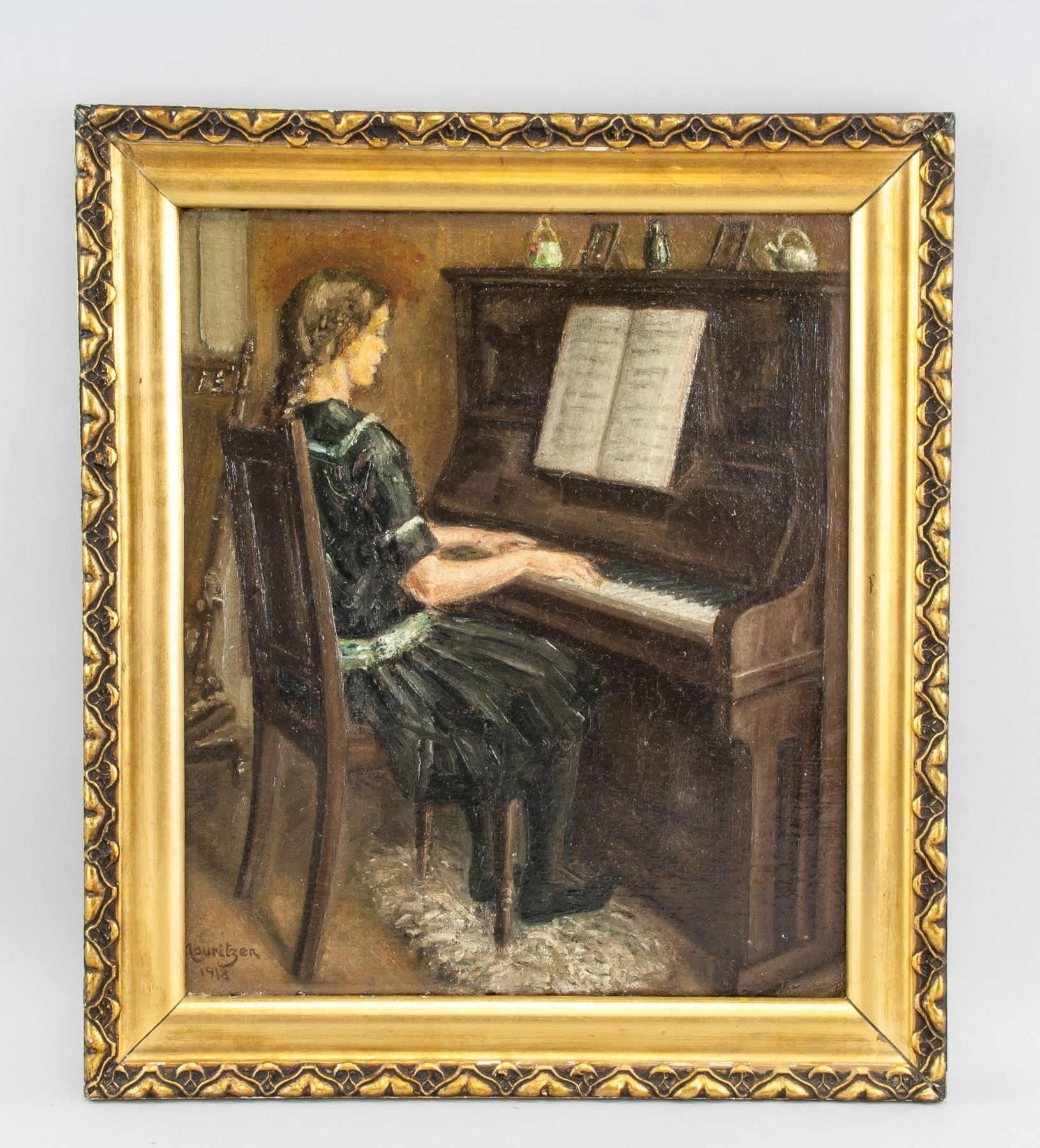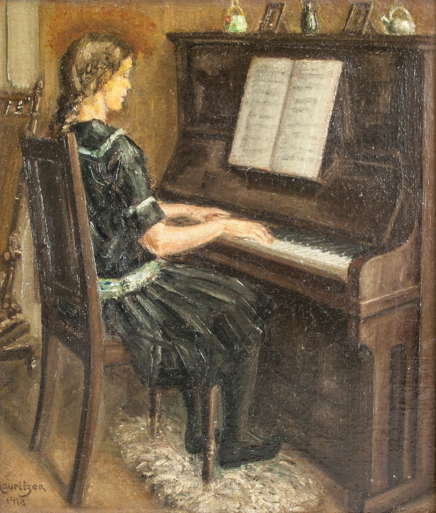 Oil on canvas. Featuring young girl. Signed Mouritzen. Scandinavian, 20th century. Dated 1918. 14.2 x 11.8 in. (36 x 30 cm)