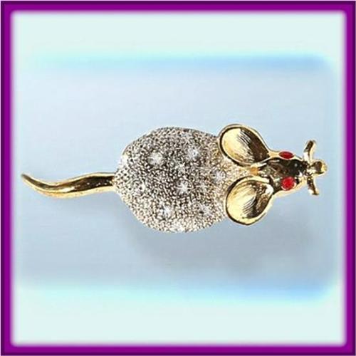MOUSE PIN BROOCH 24K GOLD SWAROVSKI CRYSTAL WHITE