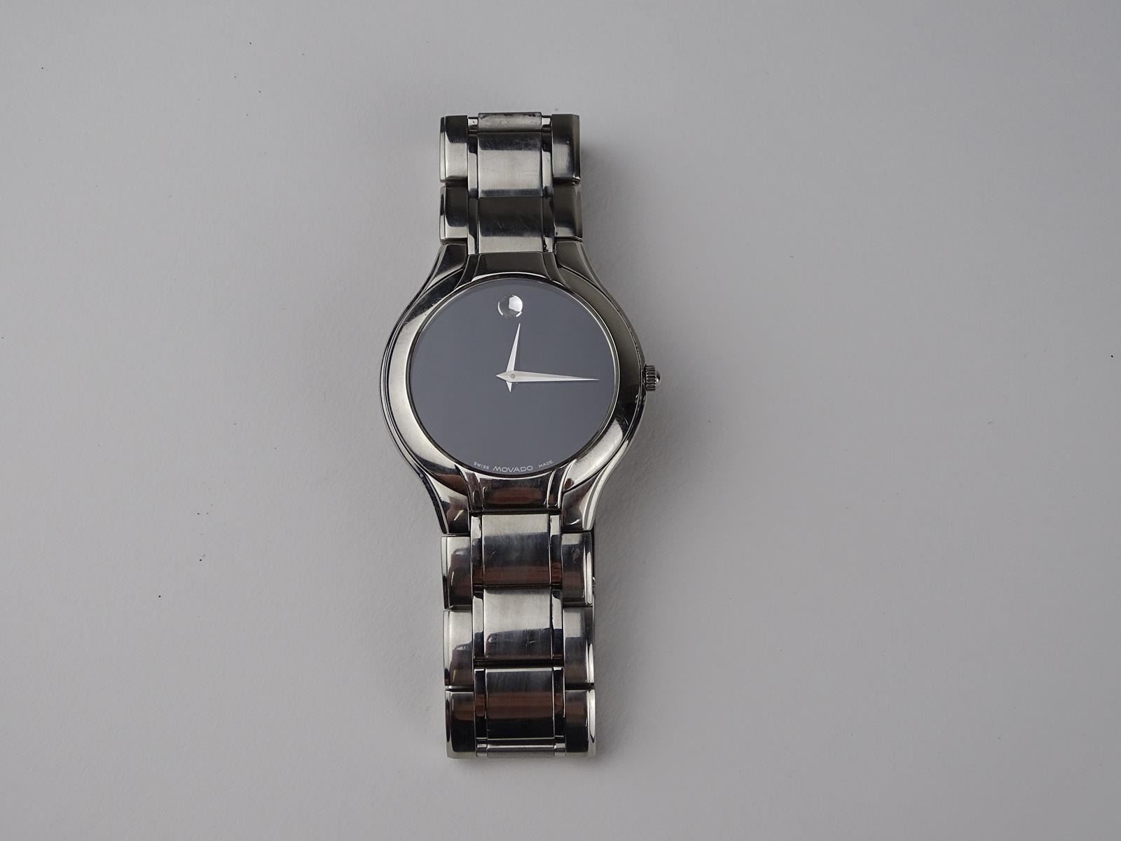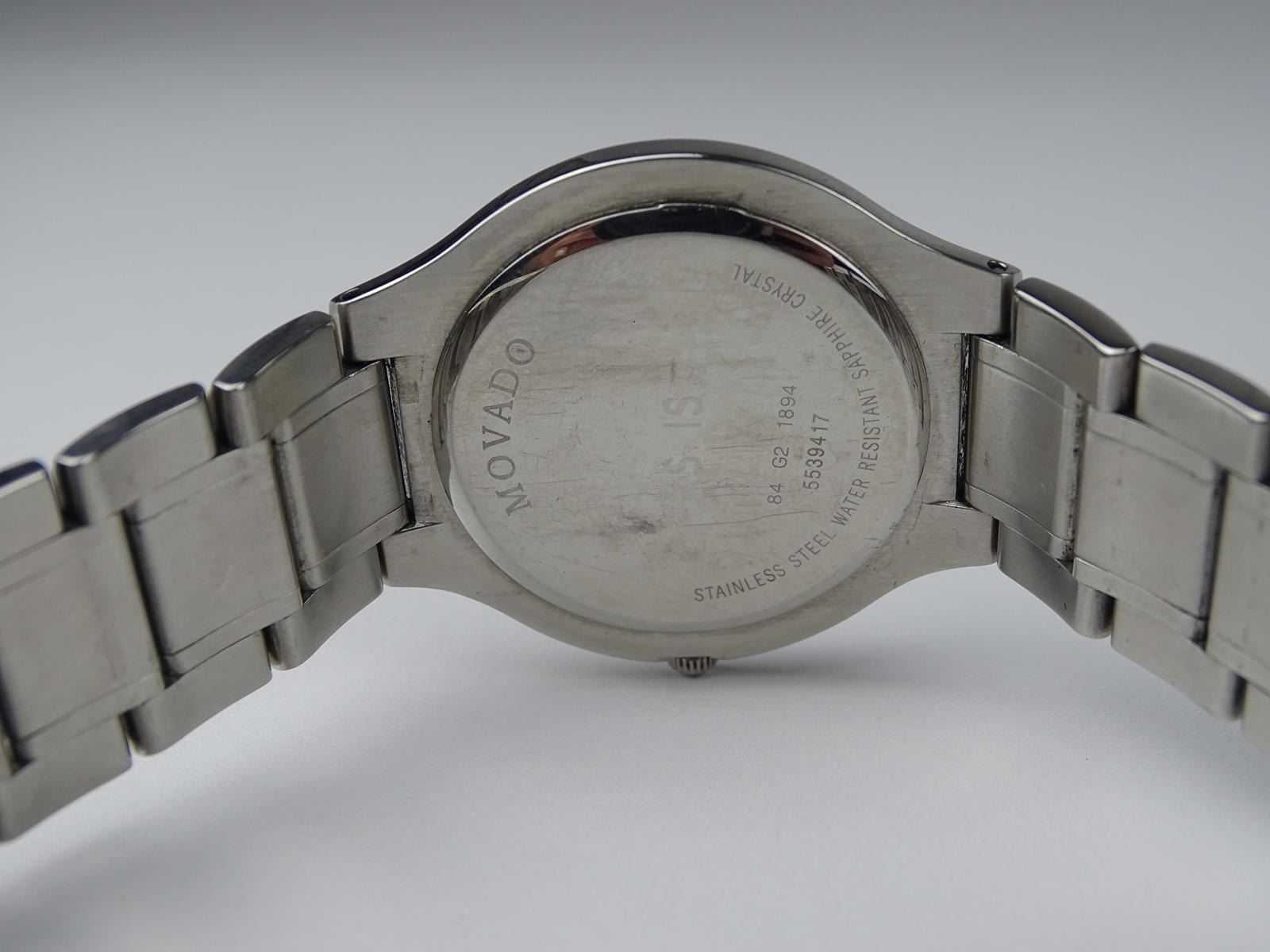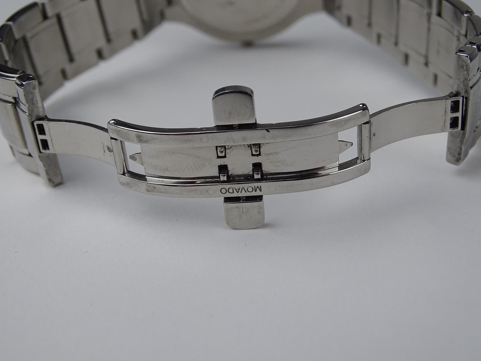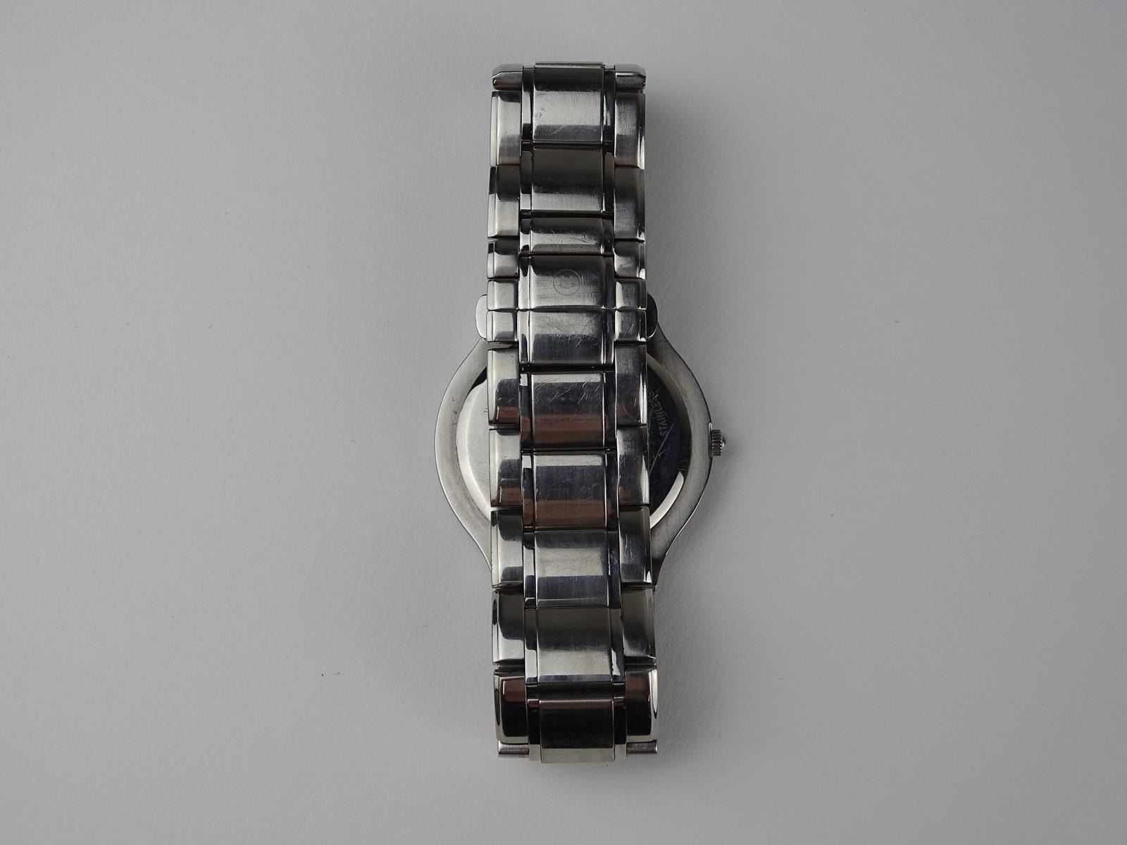 #84-G2-1899. STAINLESS STEEL, QUARTZ, SAPPHIRE CRYSTAL, BUTTERFLY CLASP. RUNS BUT NEEDS BATTERY.