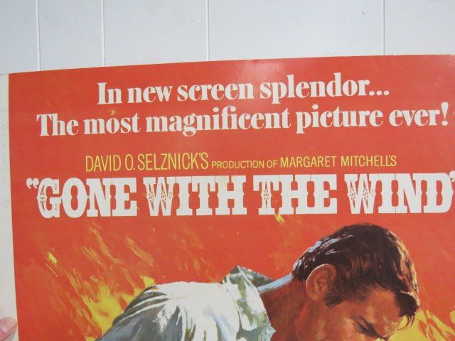 MOVIE POSTER ON CARDBOARD 28" X 20" GONE WITH THE WIND REPRODUCTION