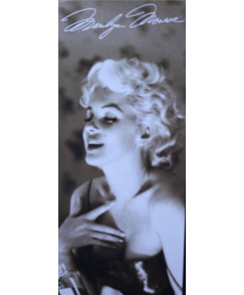 MOVIE STAR POSTER **|**|** 12X36 INCHES; UNFRAMED This poster shows Marilyn Monroe smiling with her hand next to her neck. Marilyn Monroe was an actress, singer and model. As a legendary Hollywood star, she is idolized throughout the world as a silver screen sex goddess. Her movies include Asphalt Jungle, All About Eve, Niagara, Gentlemen Prefer Blondes, Seven Year Itch, Bus Stop, Some Like it Hot, Let's Make Love, The Misfits. She is know for singing Happy Birthday, Mr. President to John F Kennedy. She was married to James Dougherty, Joe Dimaggio and Arthur Miller. ; MSRP: $250