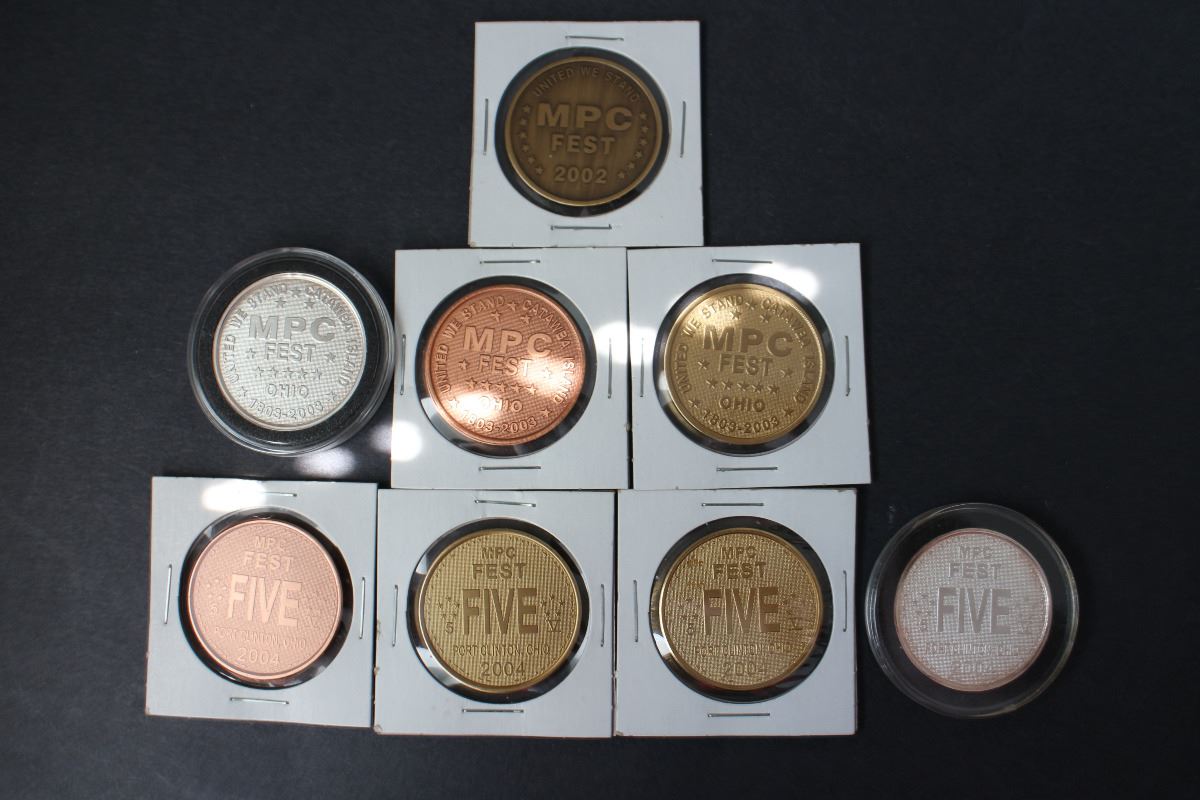 The Military Payment Certificates (MPC) collectors meet at the major American Numismatic Association World Fair Money Show and Chicago Money Show, and hold an annual MPCFest. At the fest, everybody holds up their MPC challenge coin, and if somebody Official publication is The MPC Gram, and maintain Military Payment Certificate catalogues. MPCFest registrants can receive training notes, ration books, discount tokens, elongated coins, challenge coins, and pogs. Each attendee receives a bronze medal. Participants contributing at a high level, receive silver medals. Medals are produced in small quantities, making them very collectible