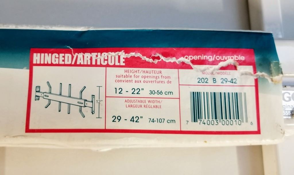 Help reduce the risk of break-ins with this pre-owned adjustable window security bar! Features a durable powder-coated finish, and tamper-resistant screws, this model (202 B 29-42) is made for windows whose heights are between 11-22", and whose widths are 29-42". Condition: Good, pre-owned, with some scratches, and small amounts of rust. Includes screws.
