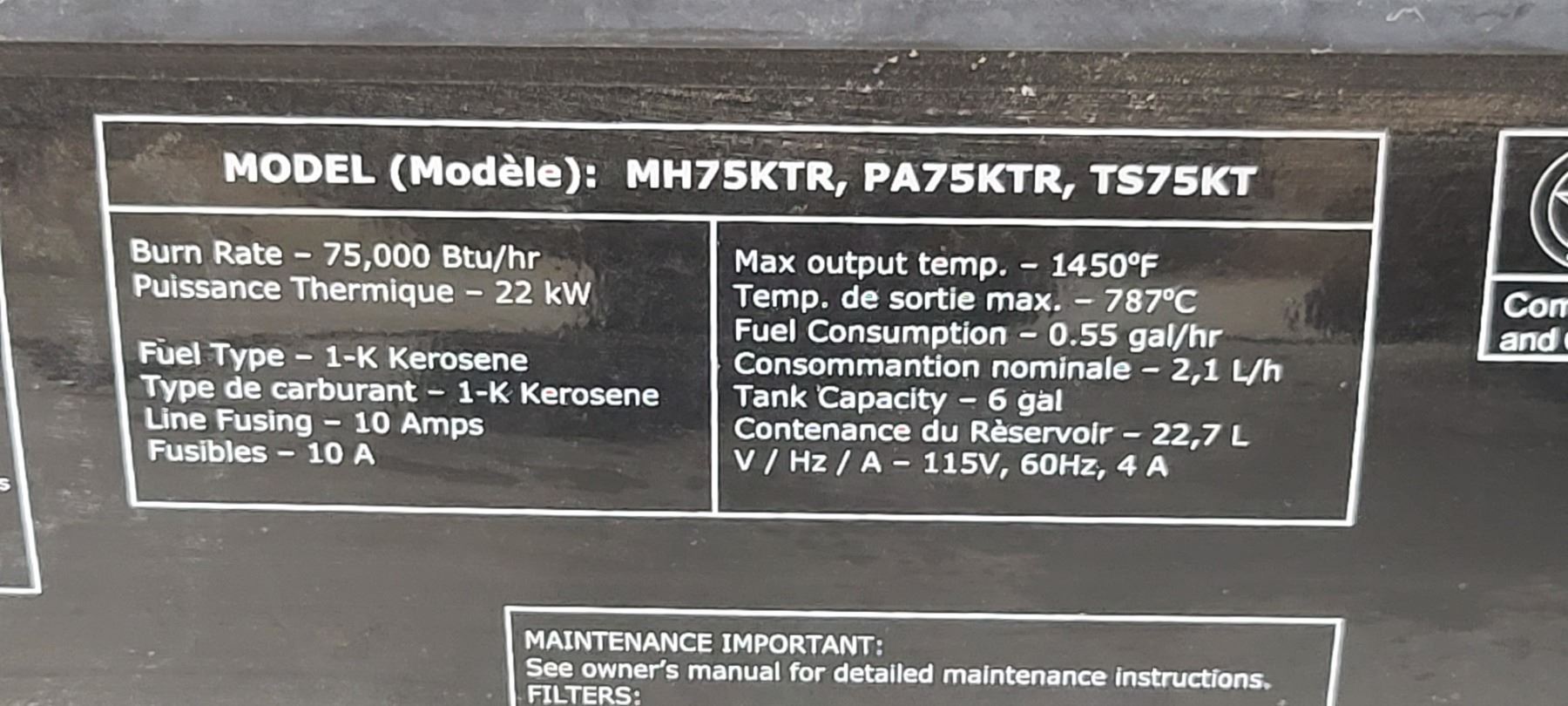 MR.HEATER KEROSINE (FULL) 75,000BTU WITH UPGRADED FUEL LINES