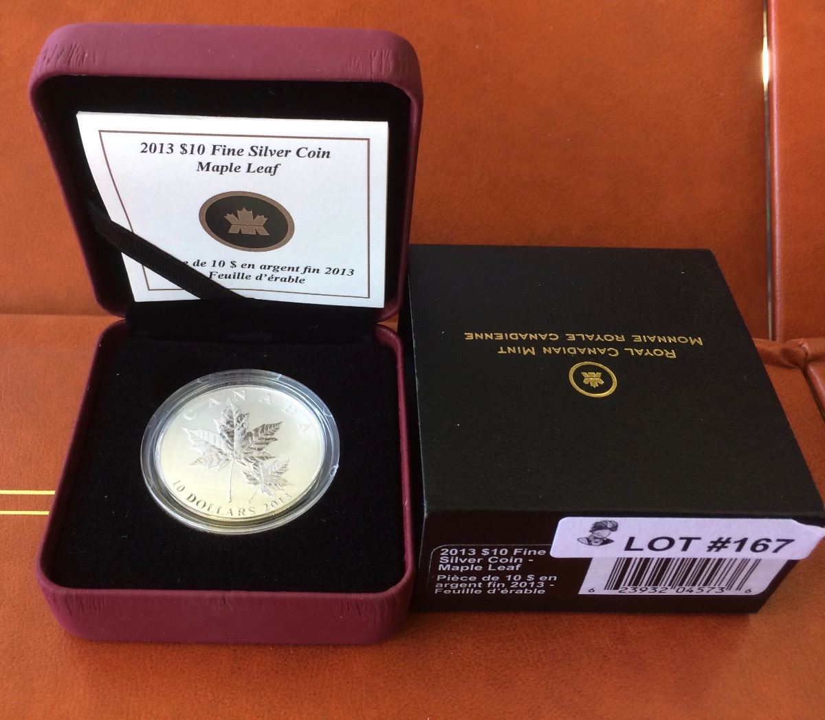 MRC: $10 Fine Silver Coin-Maple Leaf, C.O.A Box $ Sleeve, No Tax