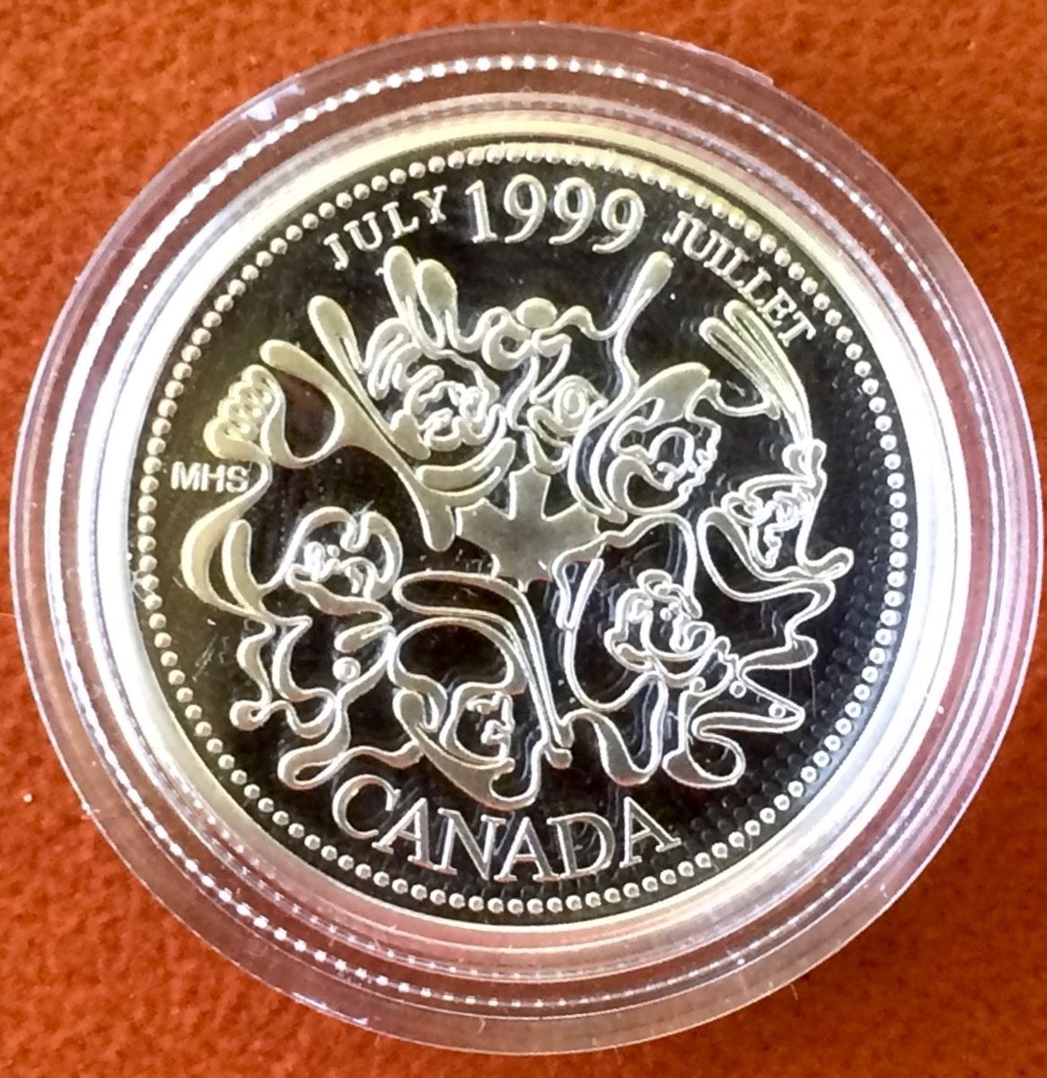 MRC: 1999 25-cent Sterling Silver July Millennium coin, C.O.A. & Lether clamshell Box
