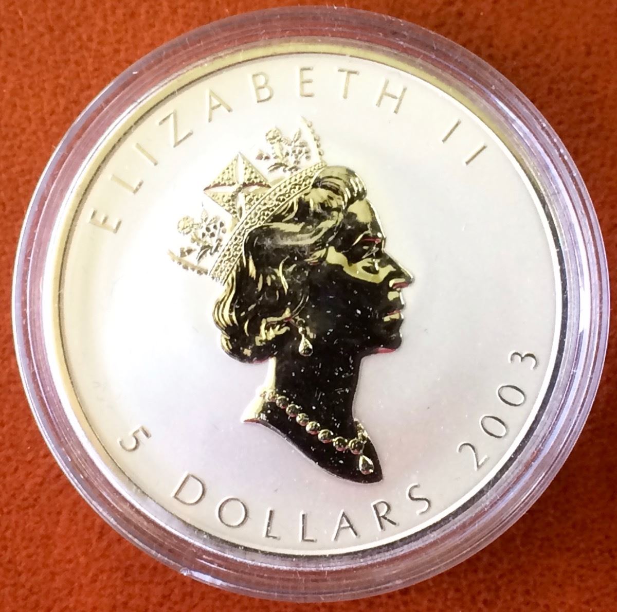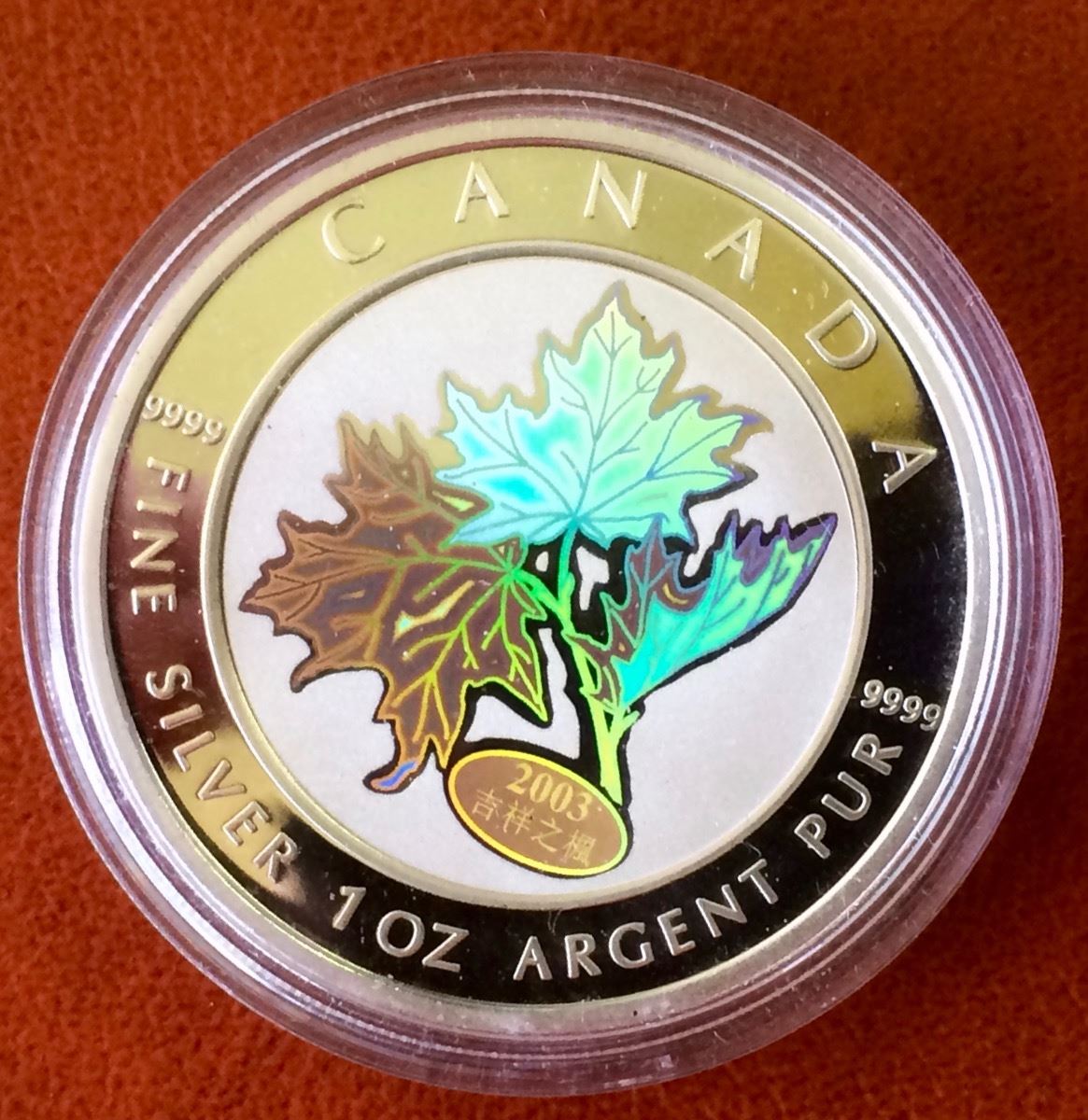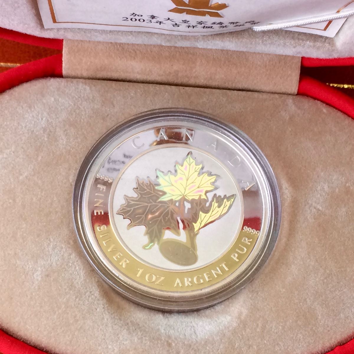 MRC: 2003 1 Oz $Silver Good Fortune Silver Maple Leaf Coin, C.O.A. Box