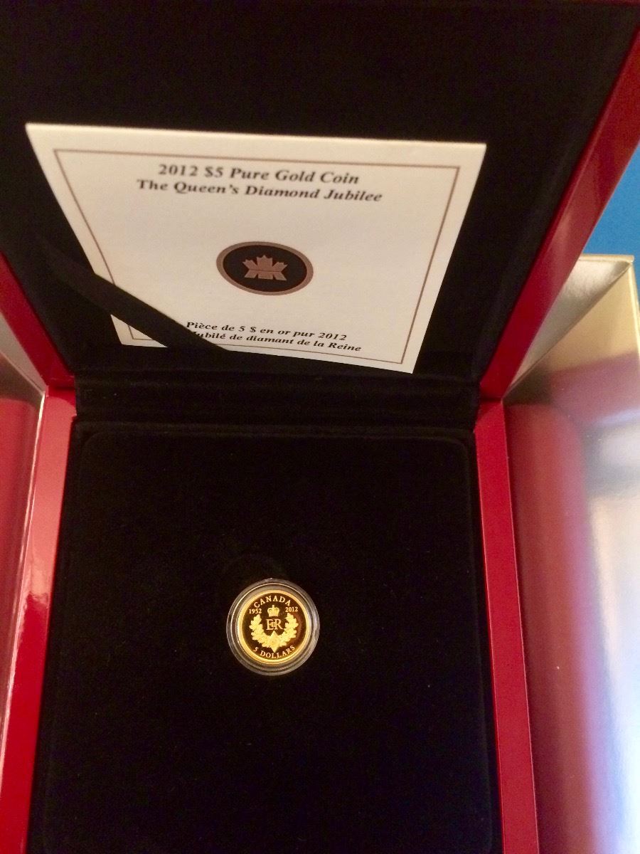 MRC: 2012 $5 Pure Gold Coin-The Queen's Jubilee. Celebrating the Royal Cypher-99,99 % Gold, Weight 3,13 gr