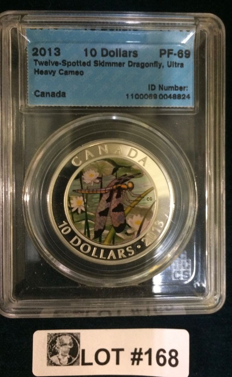 MRC: 2013 10 Dollars Twelve-Spotted Skimmer Dragonfly, Ultra Heavy Cameo, PR-69 CCCS, No Tax