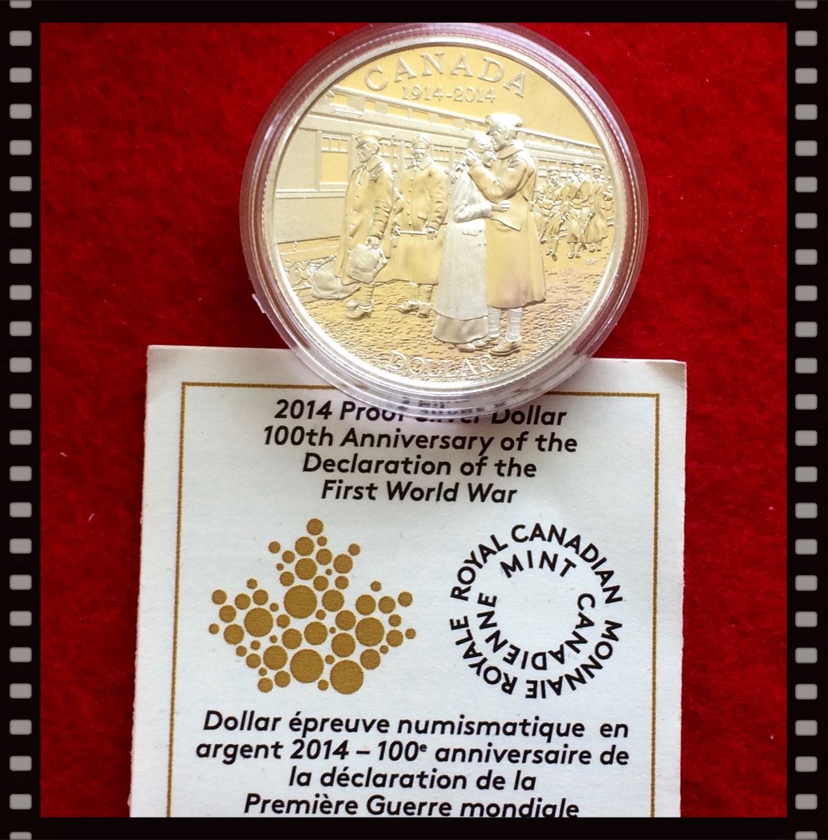 MRC: 2014 $1 Proof Silver Dollar .9999 Pure, 100th Anniversary of the Declaration of the First World, C.O.A. Box, No Sleeve. No Tax.