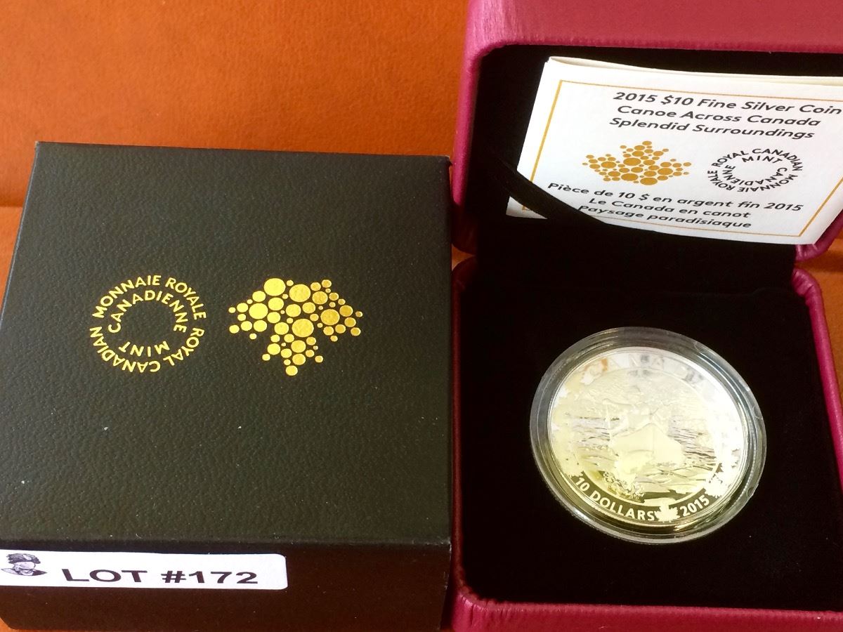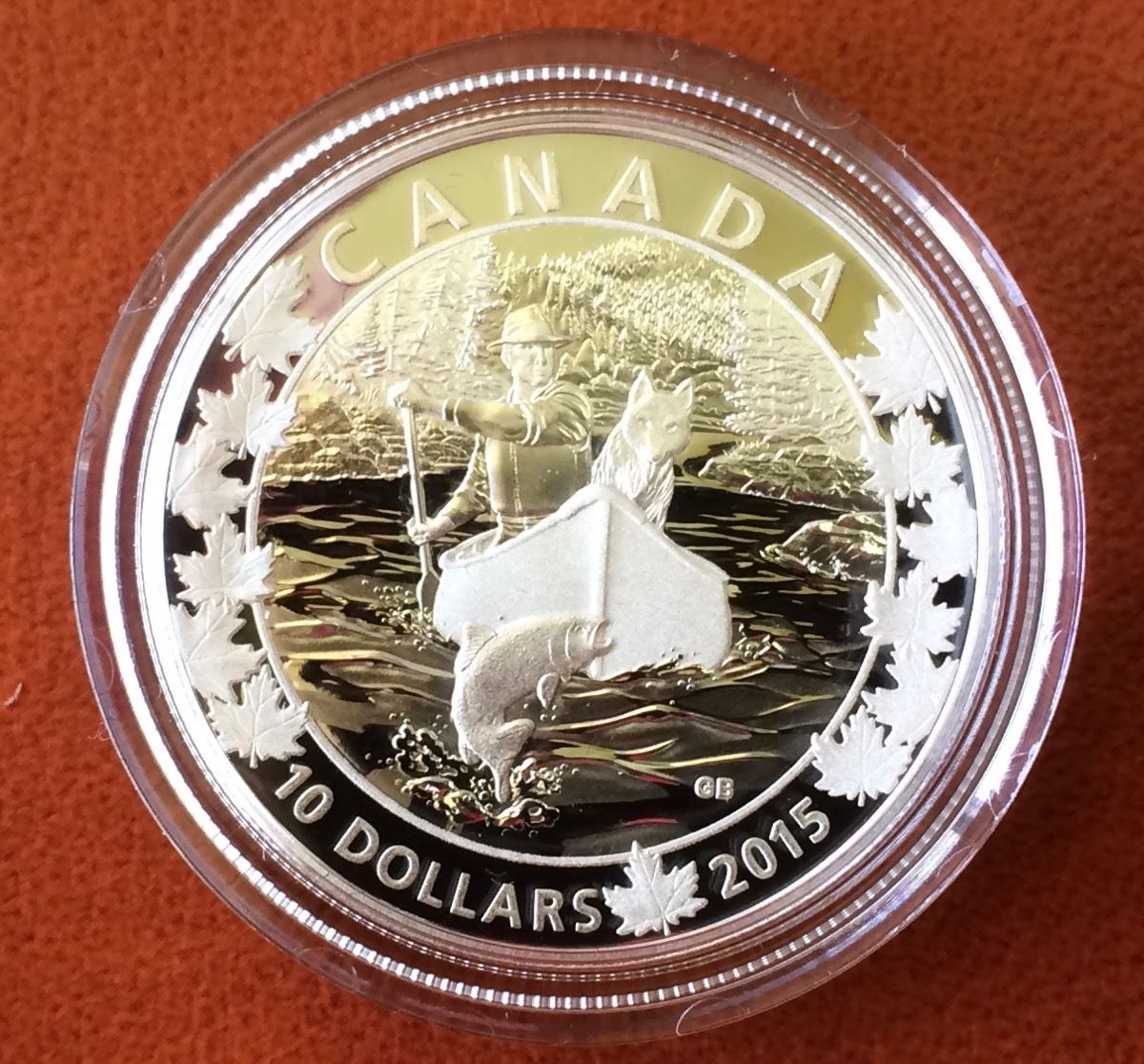 MRC: 2015 $10 Fine silver Coin- Canoe Across Canada: Splendid Surroundings, C.O.A Box & Sleeve, No Tax