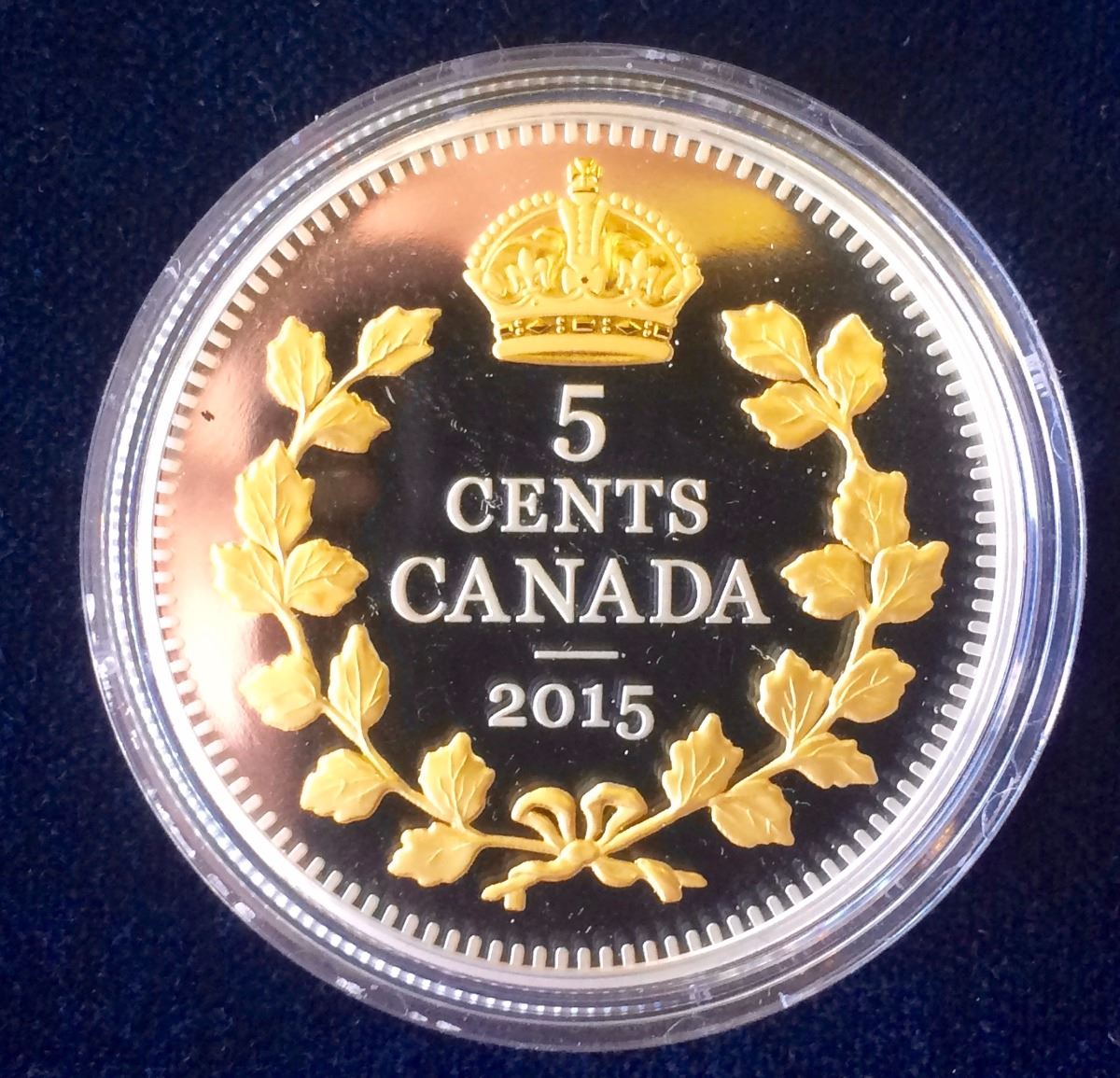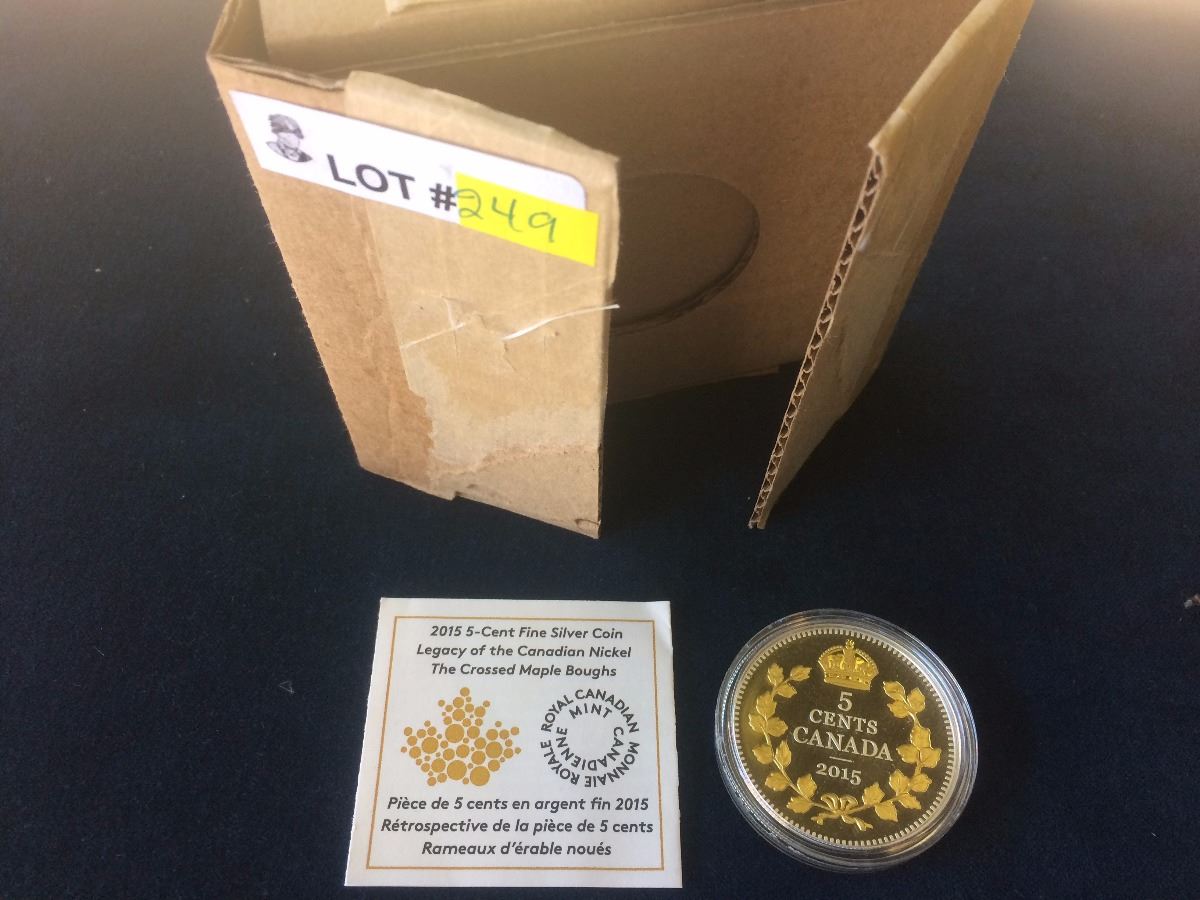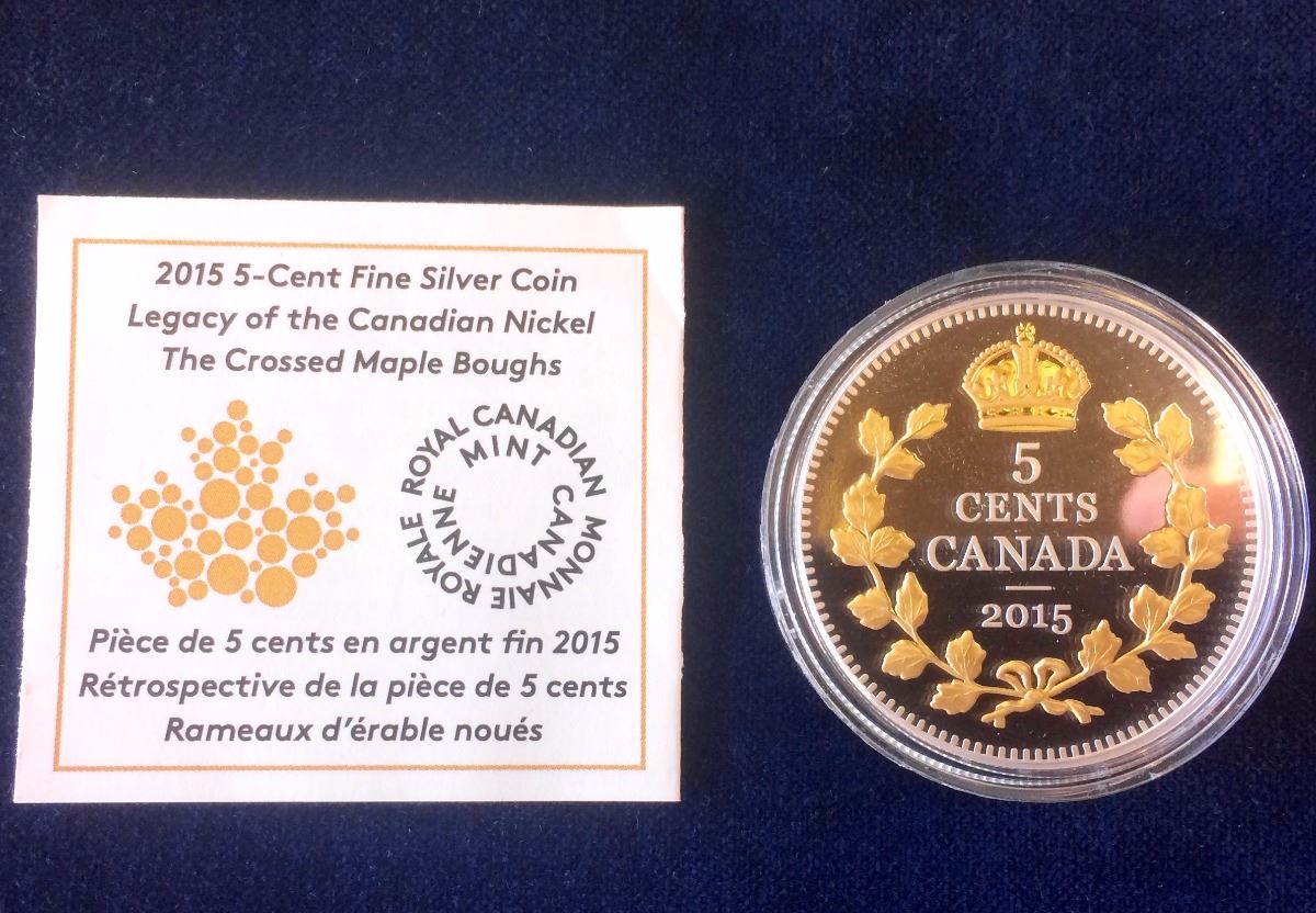 MRC: 2015 5 Cents Fine Silver Coin Legacy of the Canadian Nickel-The Criossed Maple Boughs, no Tax, C.O.A. no Box