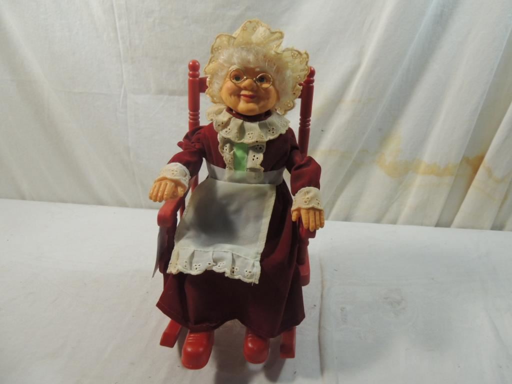 MRS CLAUS ROCKING CHAIR DOLL, CHRISTMAS DOLL, ROCKING CHAIR DOLL, AS SHOWN SEE PHOTO FOR MORE DETAILS.