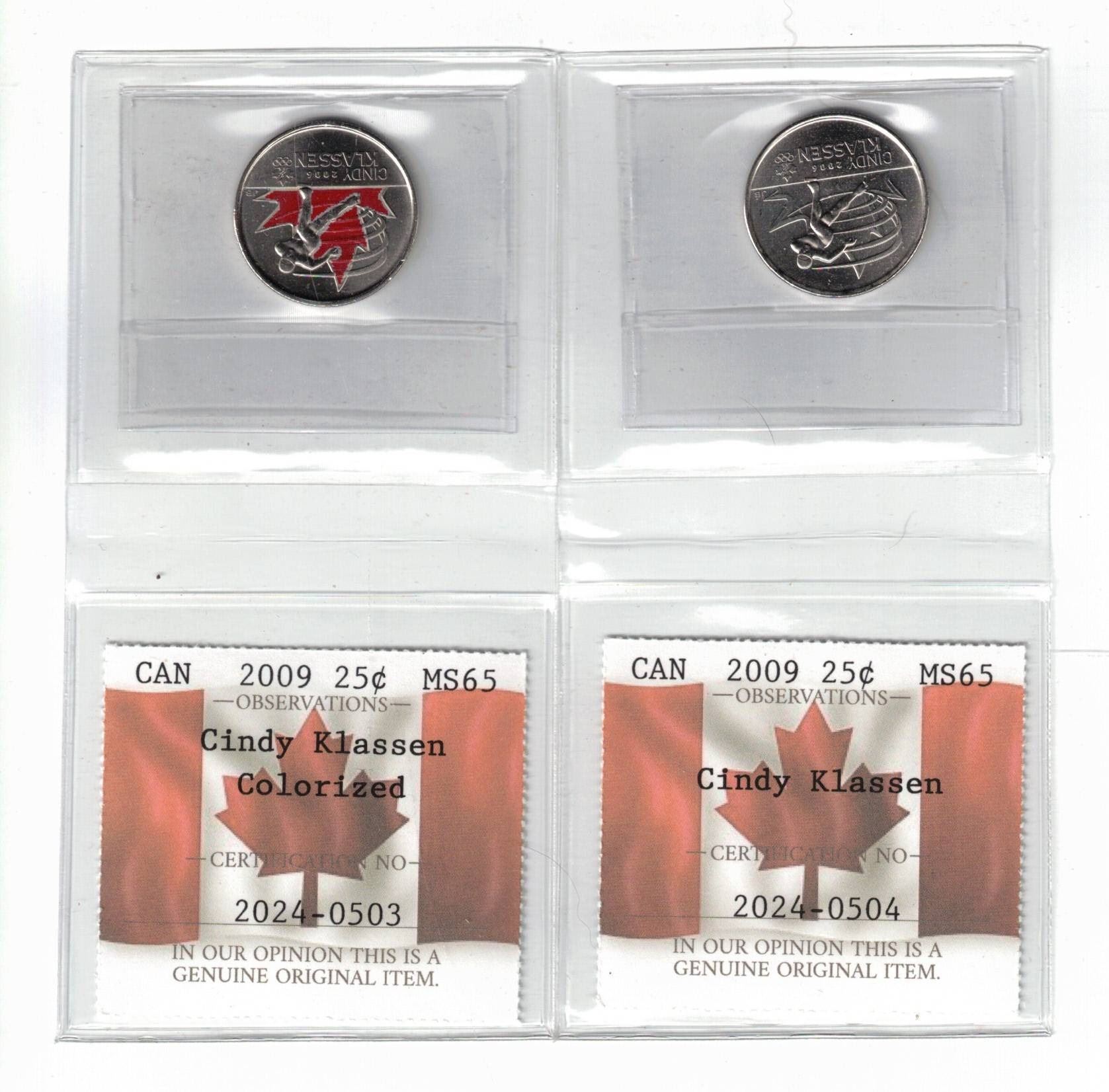 MS65-2009 Cindy Klassen 25¢ x 2 Colored-No color, PCCS Graded