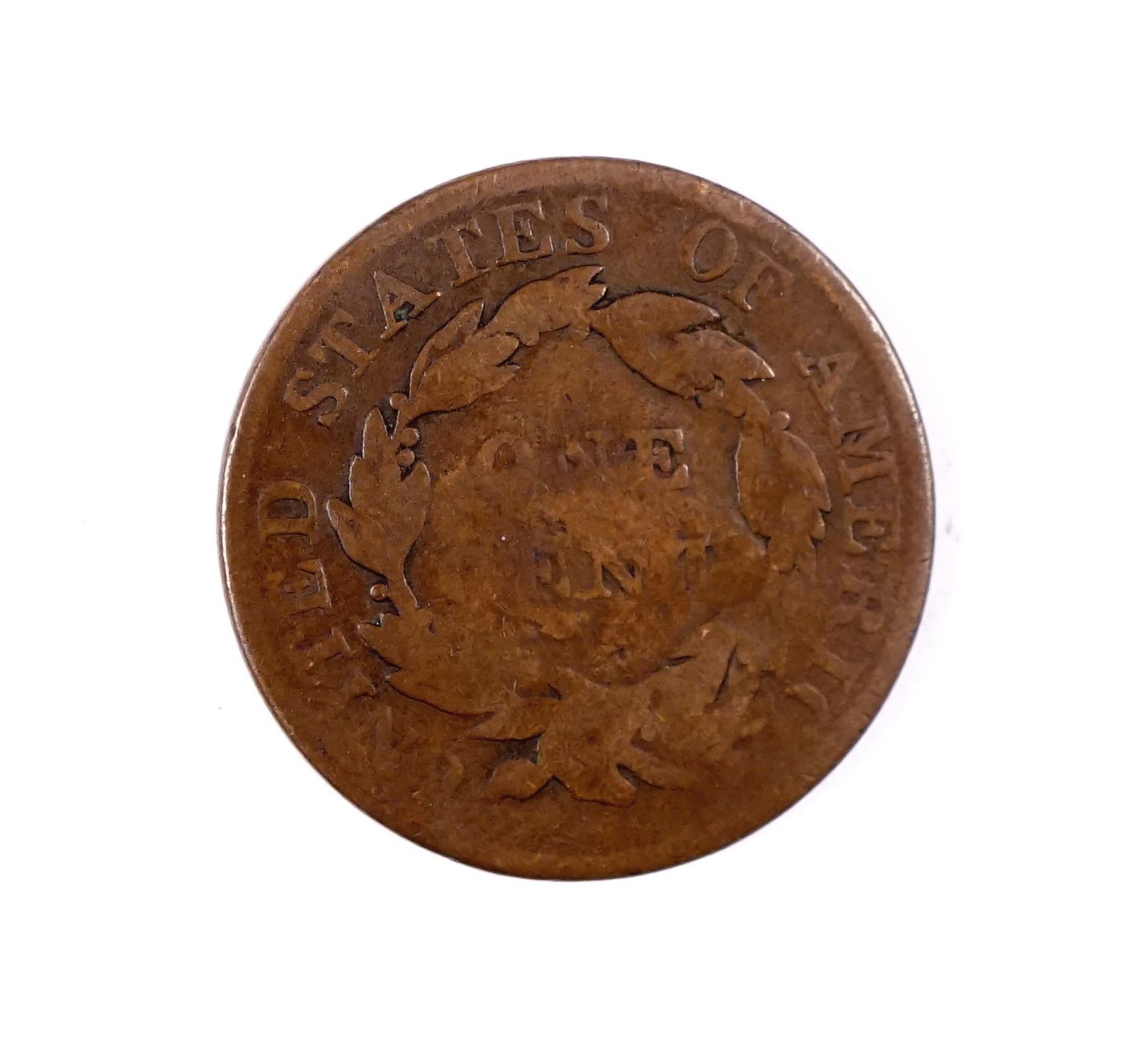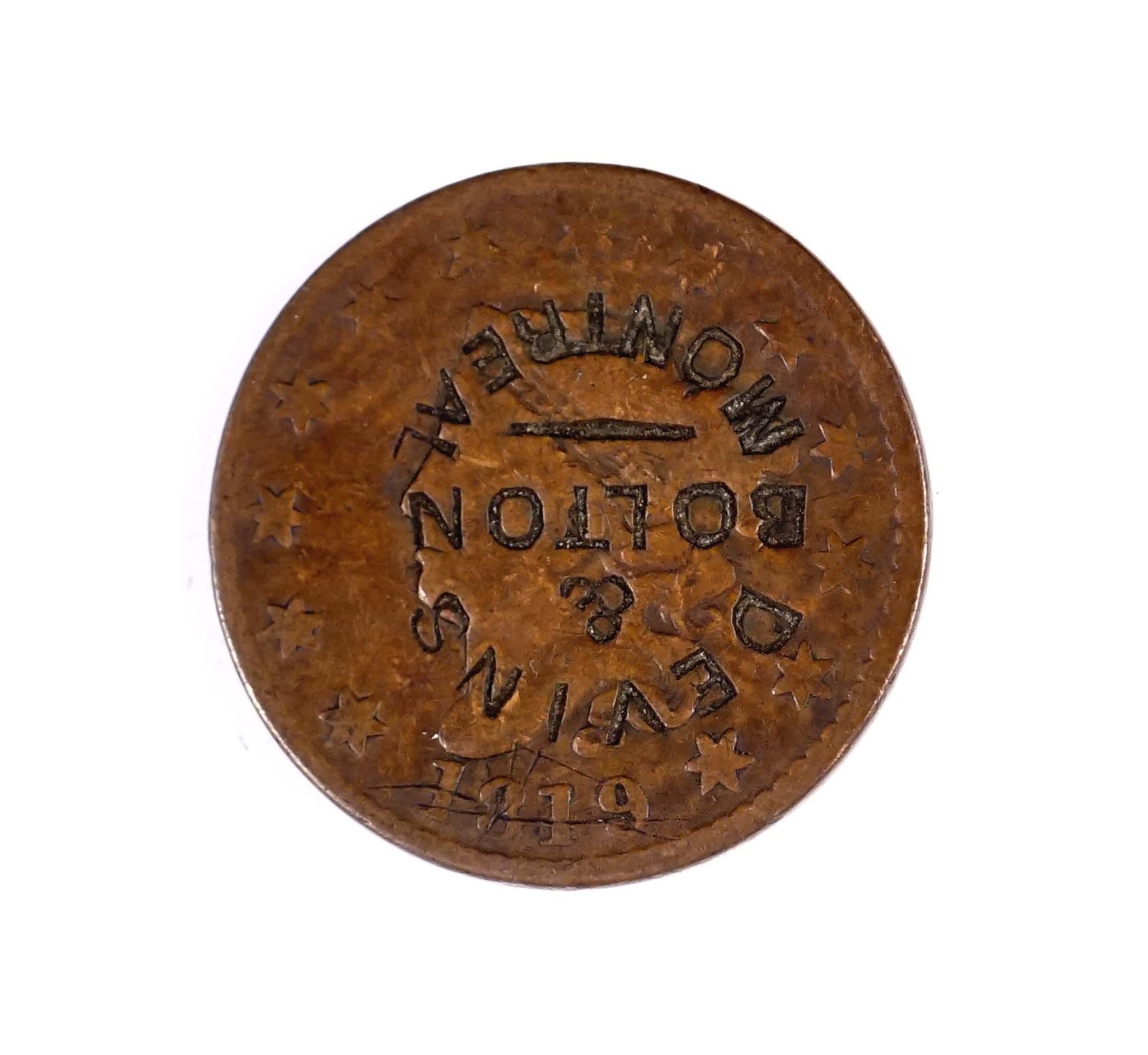 Devins and Bolton on 1819 U.S. large cent, strike to the left of centre and weak on the right