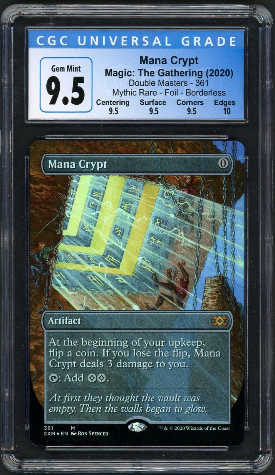Another ultra high grade MTG card, this one is Mana Crypt, borderless foil from 2020, graded 9.5 GEM MINT by SGC.
