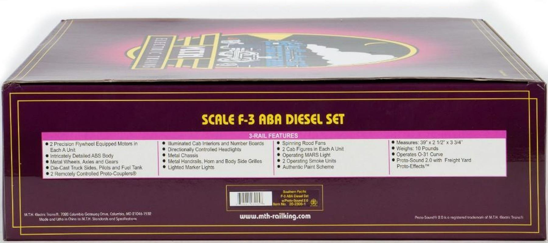 MTH 20-2306-1 Southern Pacific F-3 A-B-A Diesel Locomotive Set with ProtoSound 2.0. New old stock in original packaging.