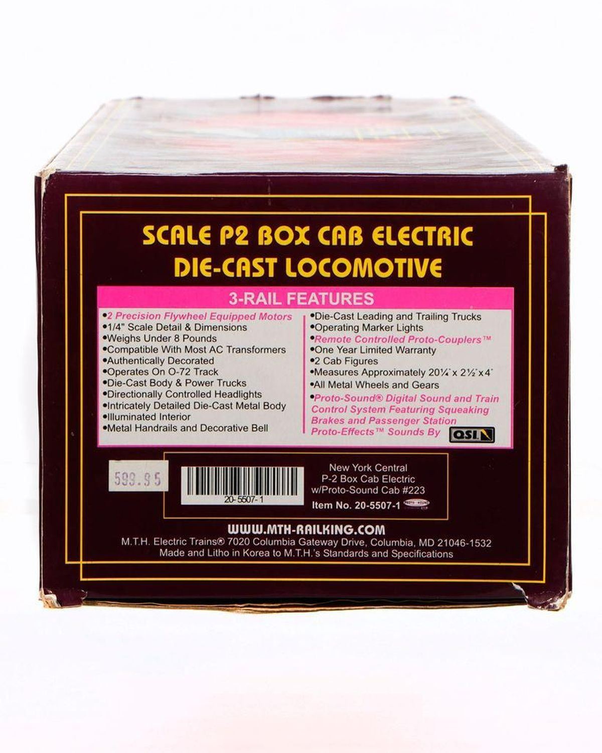 MTH 20-5507-1 O Gauge Scale P2 Box Cab Electric Locomotive in original box with shelf wear.