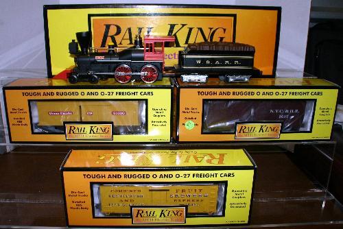 MTH 4-4-0 GENERAL STEAM LOCO W/ WHISTLE, NYC&HR BOX CAR, FRUIT GROWERS EXPRESS REEFER, UNION PACIFIC BOX CAR.