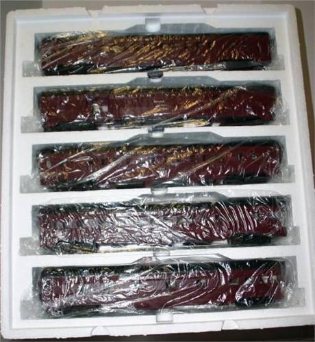 MTH LEHIGH VALLEY 70' 5 CAR PASSENGER CAR SET. 3 COACHES, BAGGAGE, OBSERVATION.