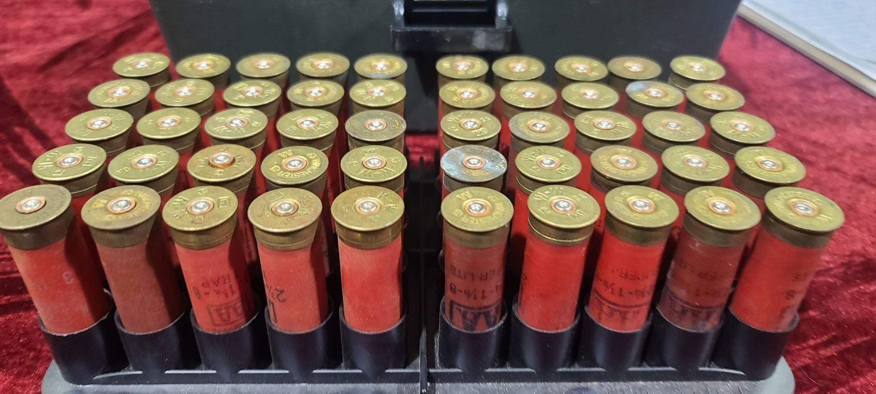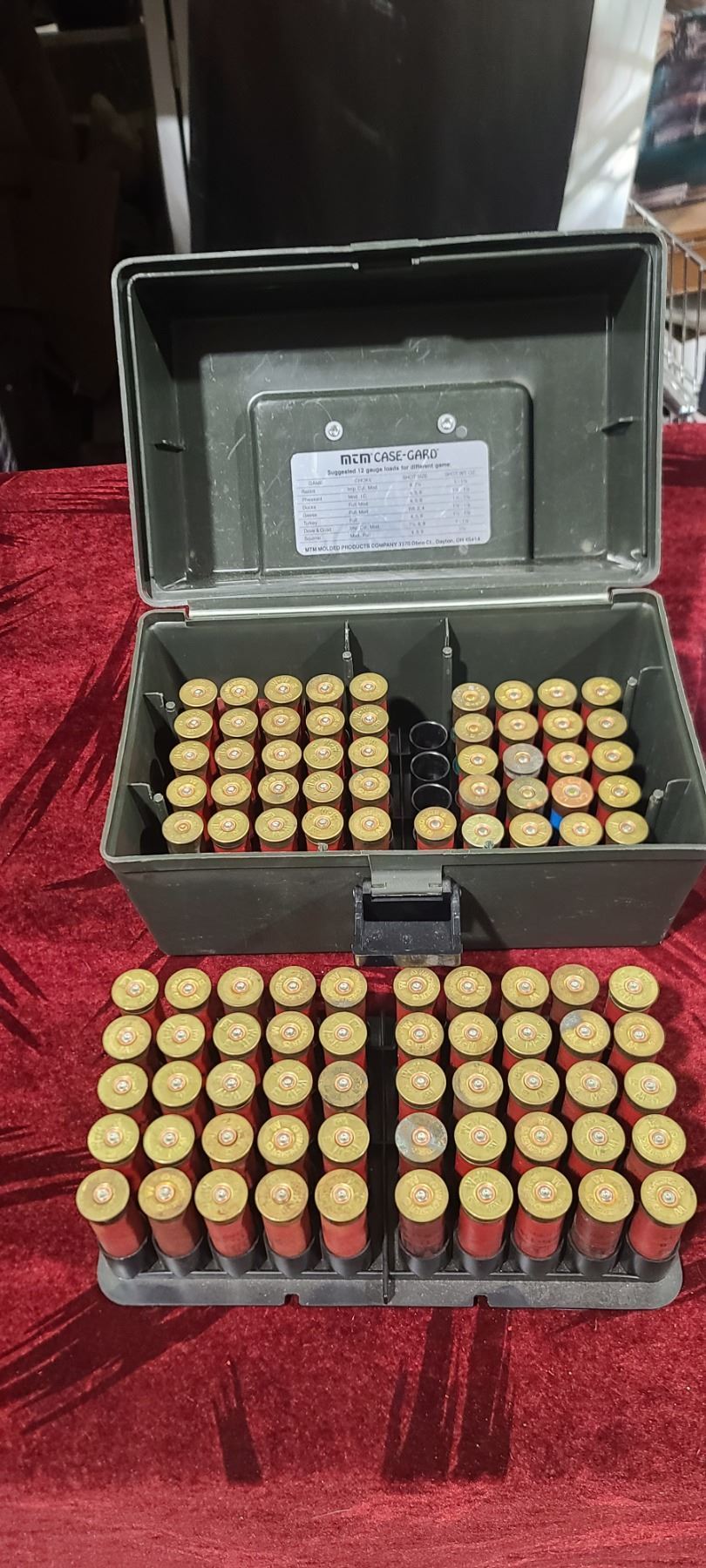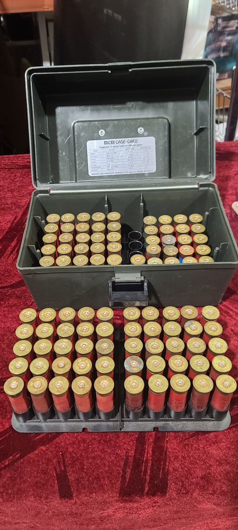 MTM CASE CARD WITH 26 ROUNDS OF 12GA TRAP - AND 73 SPENT SHELLS - CASE CAN HOLD 100 SHELLS