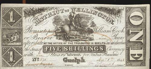 MU-6 $1 (5 shillings) 1848 District of Wellington "Guelph" choice uncirculated