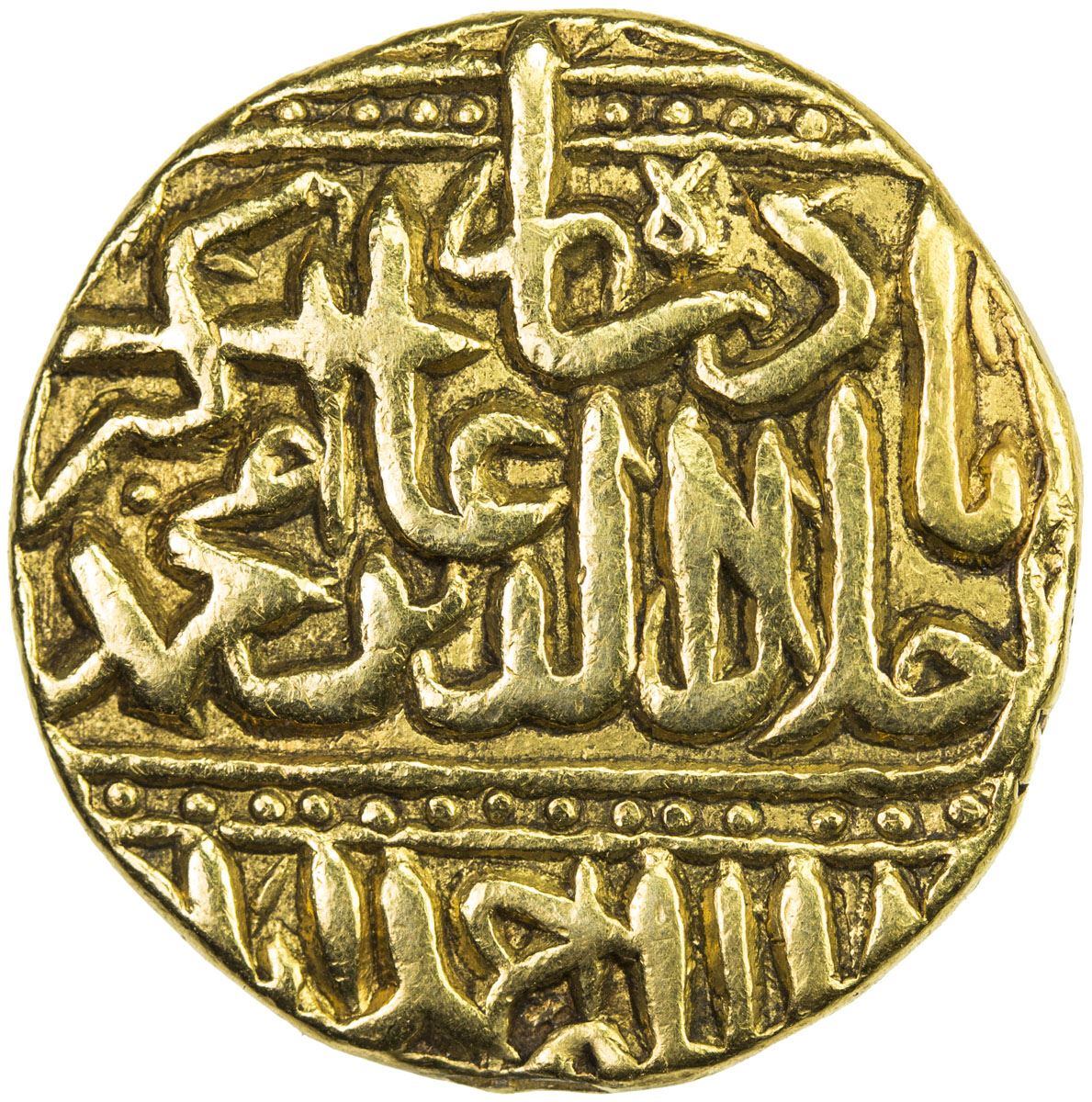 MUGHAL: Akbar I, 1556-1605, AV mohur (10.65g), Ahmadabad, AH986. VF