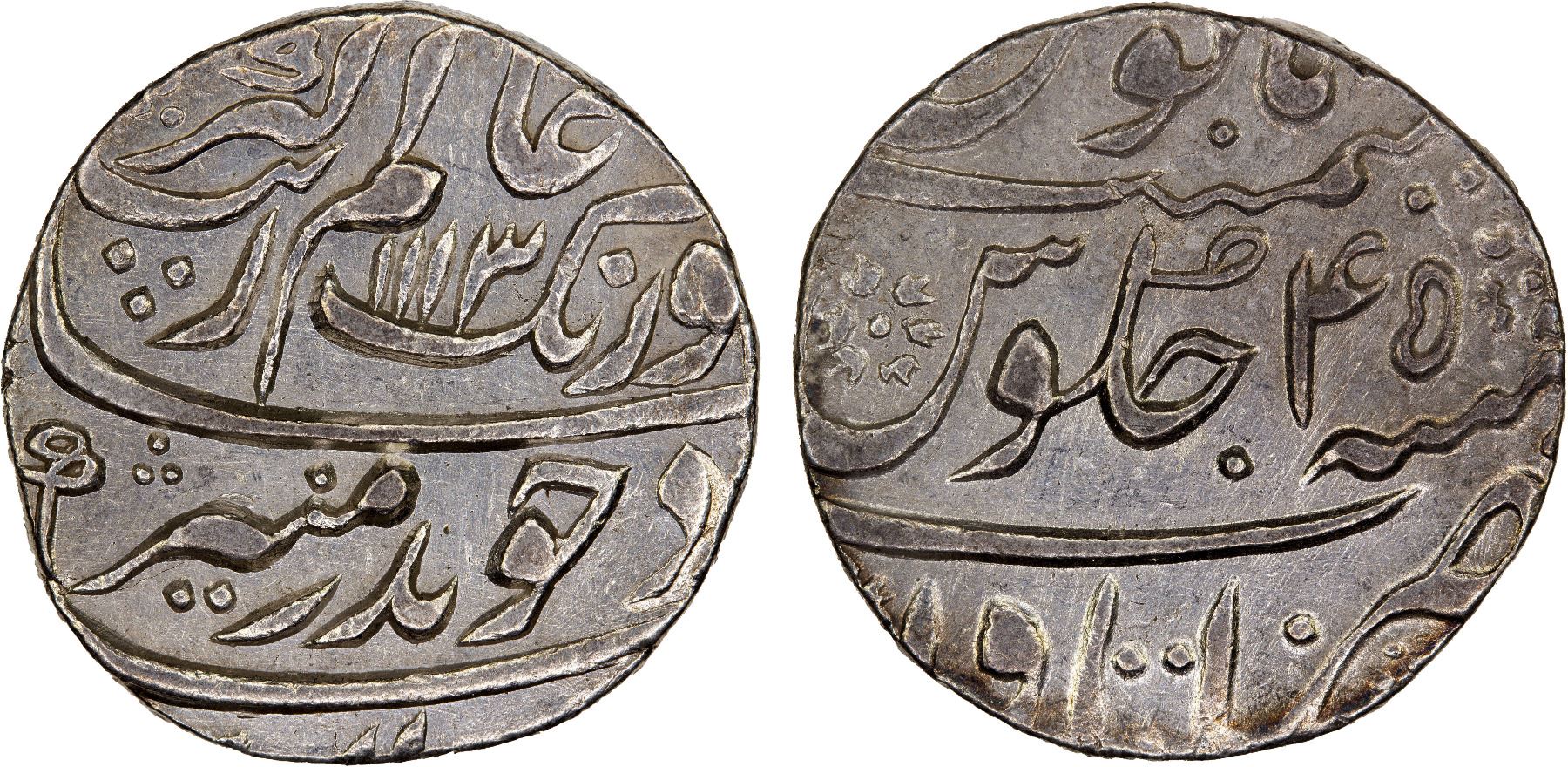 MUGHAL: Aurangzeb, 1658-1707, AR rupee (11.34g), Itawa, AH1113 year 45, XF