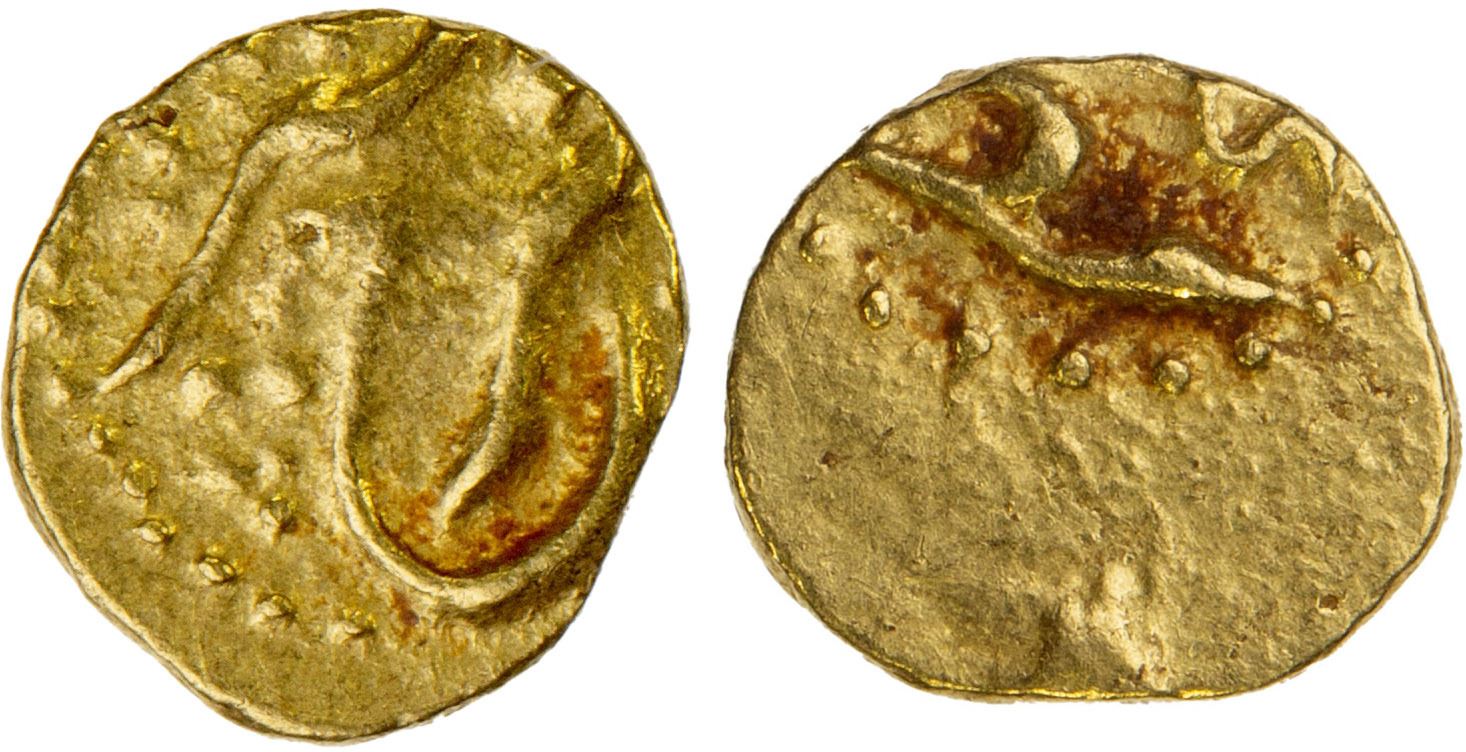 MUGHAL: Farrukhsiyar, 1713-1719, AV 1/2 fanam, Karpa, ND, KM-"B380", usual weakness, VF-XF, RR.