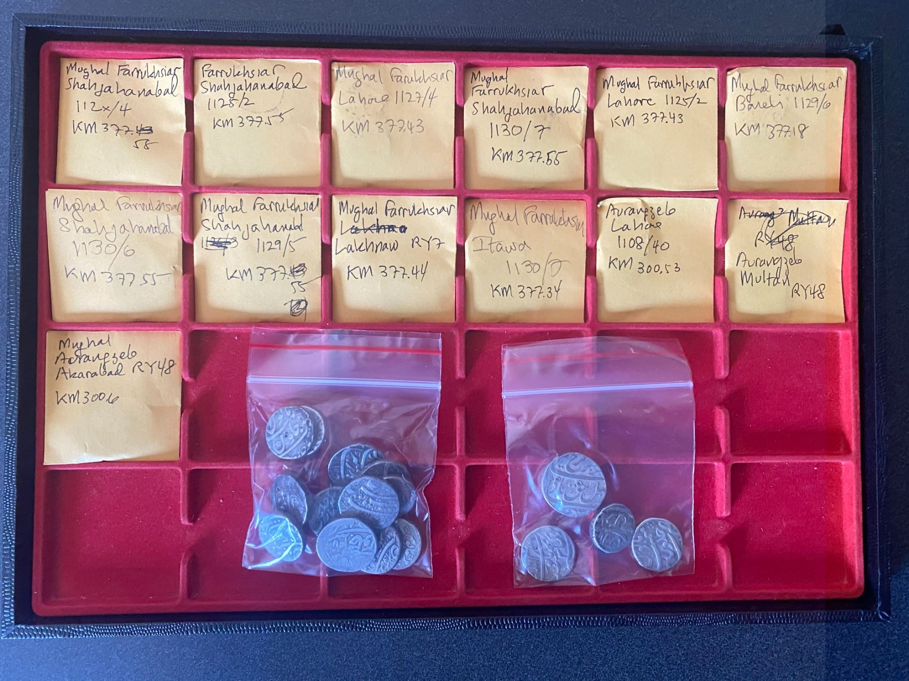 MUGHAL: LOT of 29 silver rupees, including Aurangzeb (1658-1707), 15 examples, of which about 8 have legible mint; and Farrukhsiyar (1713-1719), 14 pcs, of which about 10 have legiblemint name; average Fine condition, but many, especially of Aurangzeb, have various flaws, including test marks; retail value $600, lot of 29 pieces.