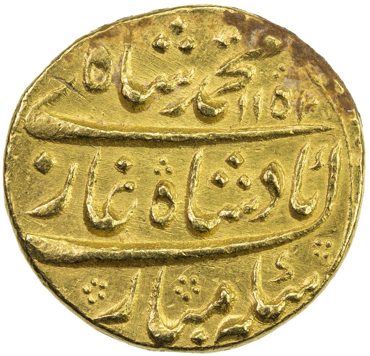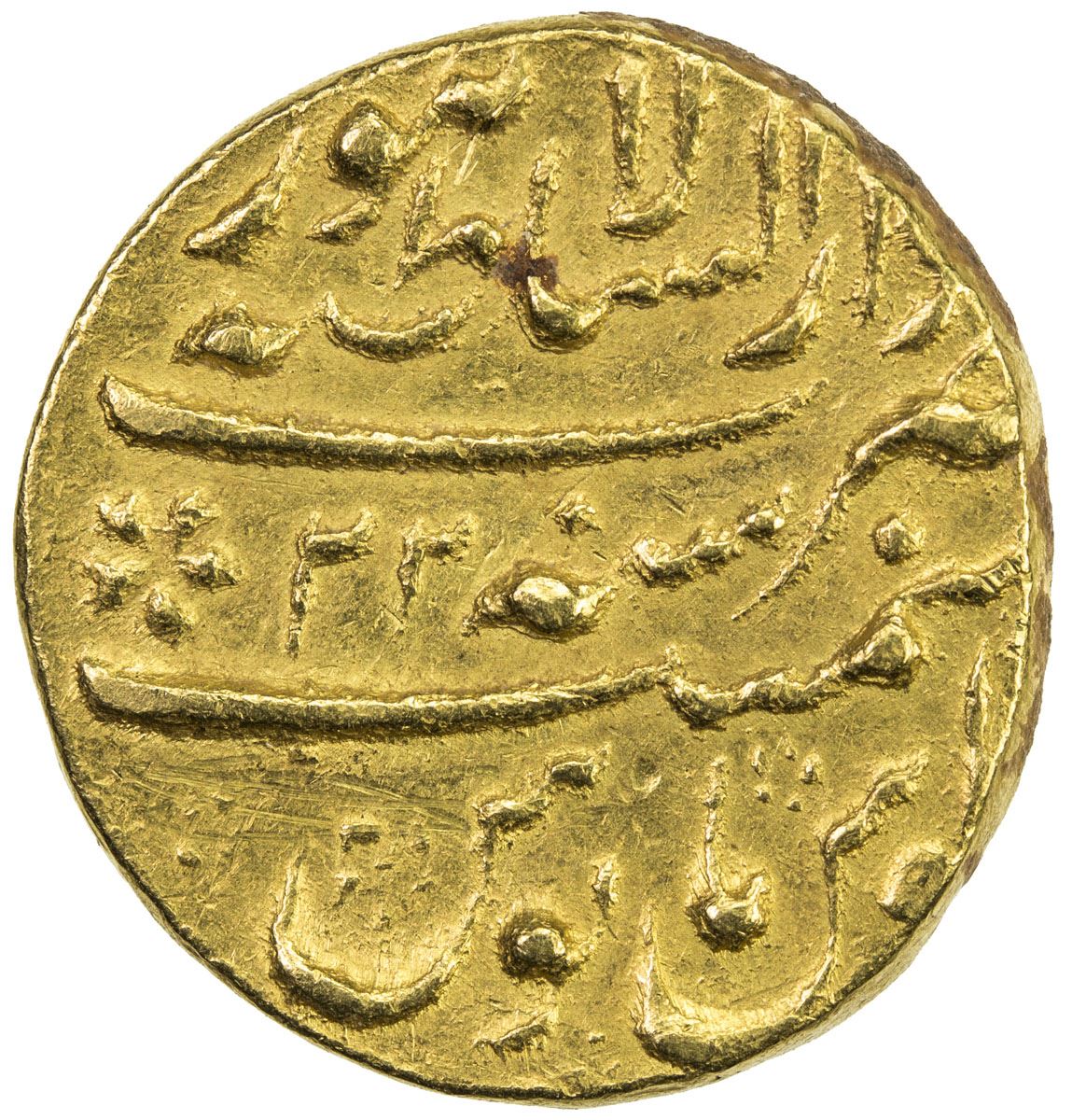 MUGHAL: Muhammad Shah, 1719-1748, AV mohur (10.94g), Lahore, AH1152 year 22, KM-438.15, slight scratch in reverse field, pleasing VF to EF, ex Joel Malter Auction 44 (1990), Lot 697.