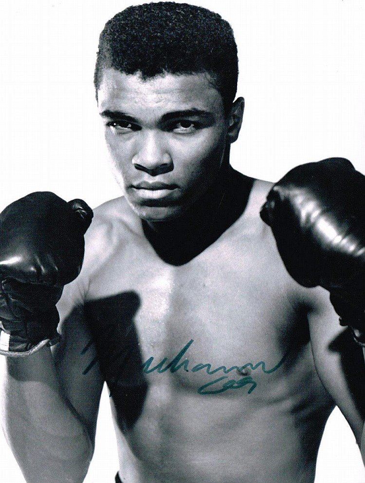 A photo of Ali boxing signed by Muhammad Ali in sharpie. 10x8 inches. Condition Report: Very good.