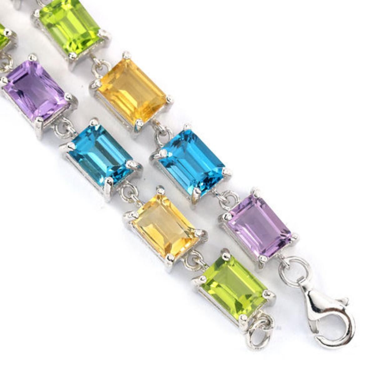 NATURAL AMETHYST PERIDOT CITRINE TOPAZ 925 SILVER BRACELET 14K WHITE GOLD COATING;LENGTH OF ITEM (Inch.) 6.50 ( RESIZE : NO ) ITEM QUANTITY 1 STONE SHAPE EMERALD FACET CUT STONE DIMENSION 7 X 5 MM. ITEM WEIGHT 14.4 GRAM COLOR MULTI COLOR CLARITY IF TO VVS LUSTER ENCHANTING TREATMENT NATURAL UNHEATED IRRADIATION ORIGIN OF STONE BRAZIL, ASIA AFRICA HARDNESS 6. 5 - 8