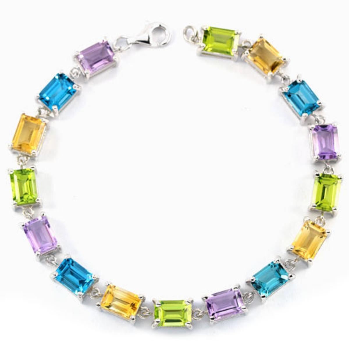 NATURAL AMETHYST PERIDOT CITRINE TOPAZ 925 SILVER BRACELET 14K WHITE GOLD COATING;LENGTH OF ITEM (Inch.) 6.50 ( RESIZE : NO ) ITEM QUANTITY 1 STONE SHAPE EMERALD FACET CUT STONE DIMENSION 7 X 5 MM. ITEM WEIGHT 14.4 GRAM COLOR MULTI COLOR CLARITY IF TO VVS LUSTER ENCHANTING TREATMENT NATURAL UNHEATED IRRADIATION ORIGIN OF STONE BRAZIL, ASIA AFRICA HARDNESS 6. 5 - 8