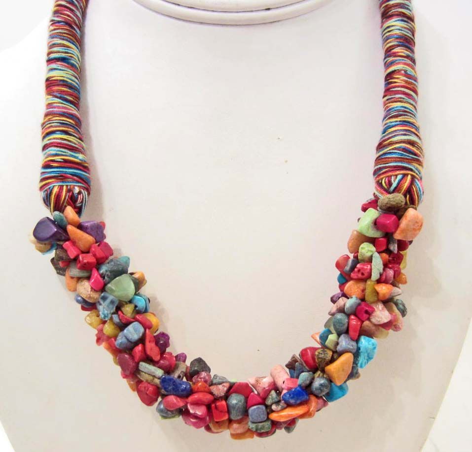 MULTI-COLOR BOHEMIAN CHIPS ESTATE JEWELRY NECKLACE
