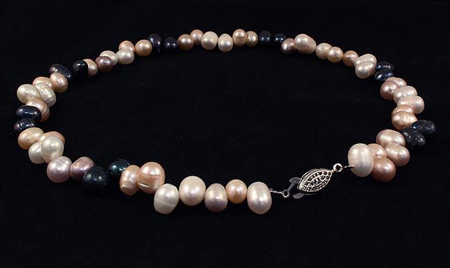 MULTI-COLOR FRESHWATER PEARL 262.91CTW NECKLACE **|**|** 16 INCHES LONG NECKLACE WITH BLACK-WHITE-PEACH-LAVANDER SEMI ROUND 8-10MM FRESHWATER PEARL ; MSRP: $100