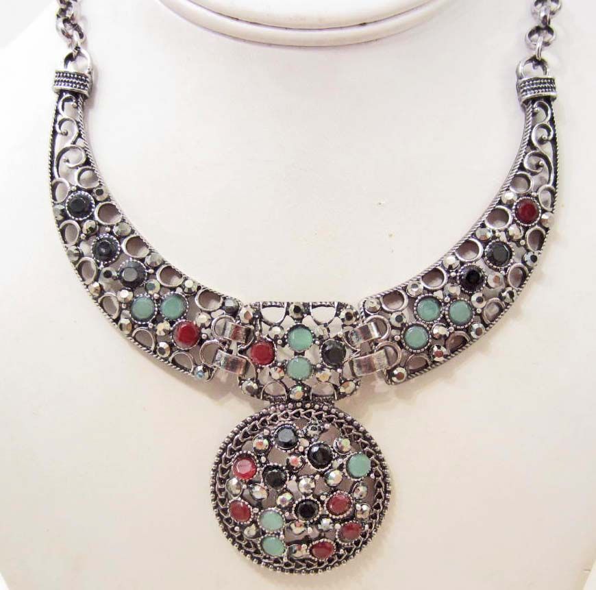 MULTI-COLORED FASHION COLLAR ESTATE JEWELRY NECKLACE