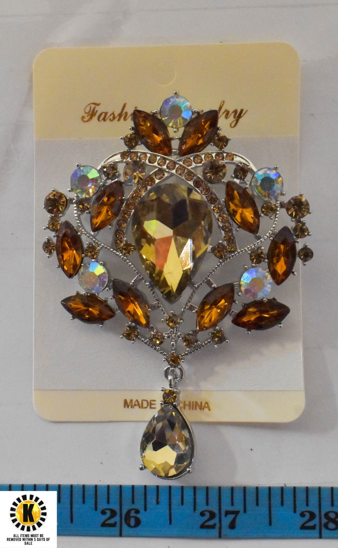 WITH AMBER, GREY & IRRIDESCENT CZ, MEASURES OVER 4 " IN LENGTH. JEWELLERY