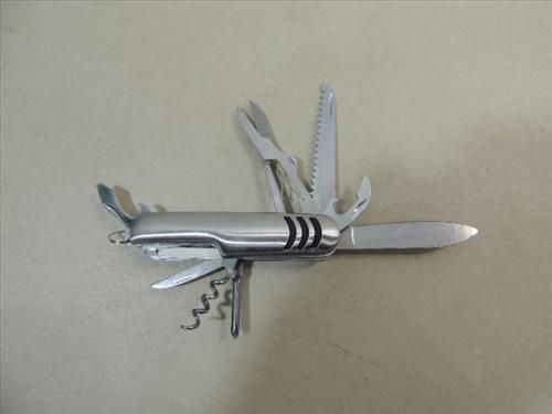 MULTI-FUNCTIONAL STAINLESS STEEL POCKET KNIFE.  AS SHOWN.  VIEW PICTURE FOR DETAIL.