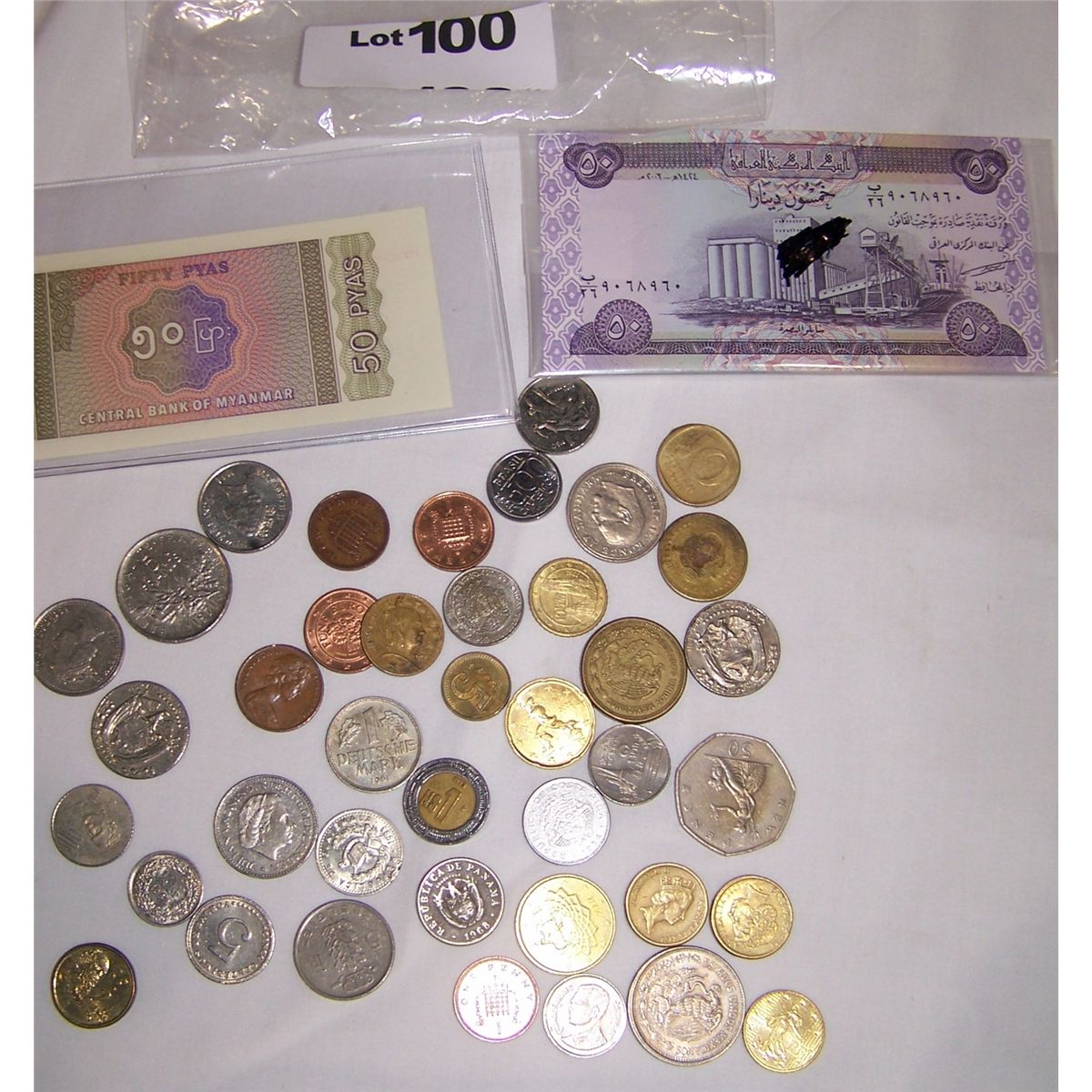 MULTI-PIECE ASSORTED FORIEGN COIN & CURRENCY WHOLESALE LOT, AS SHOWN