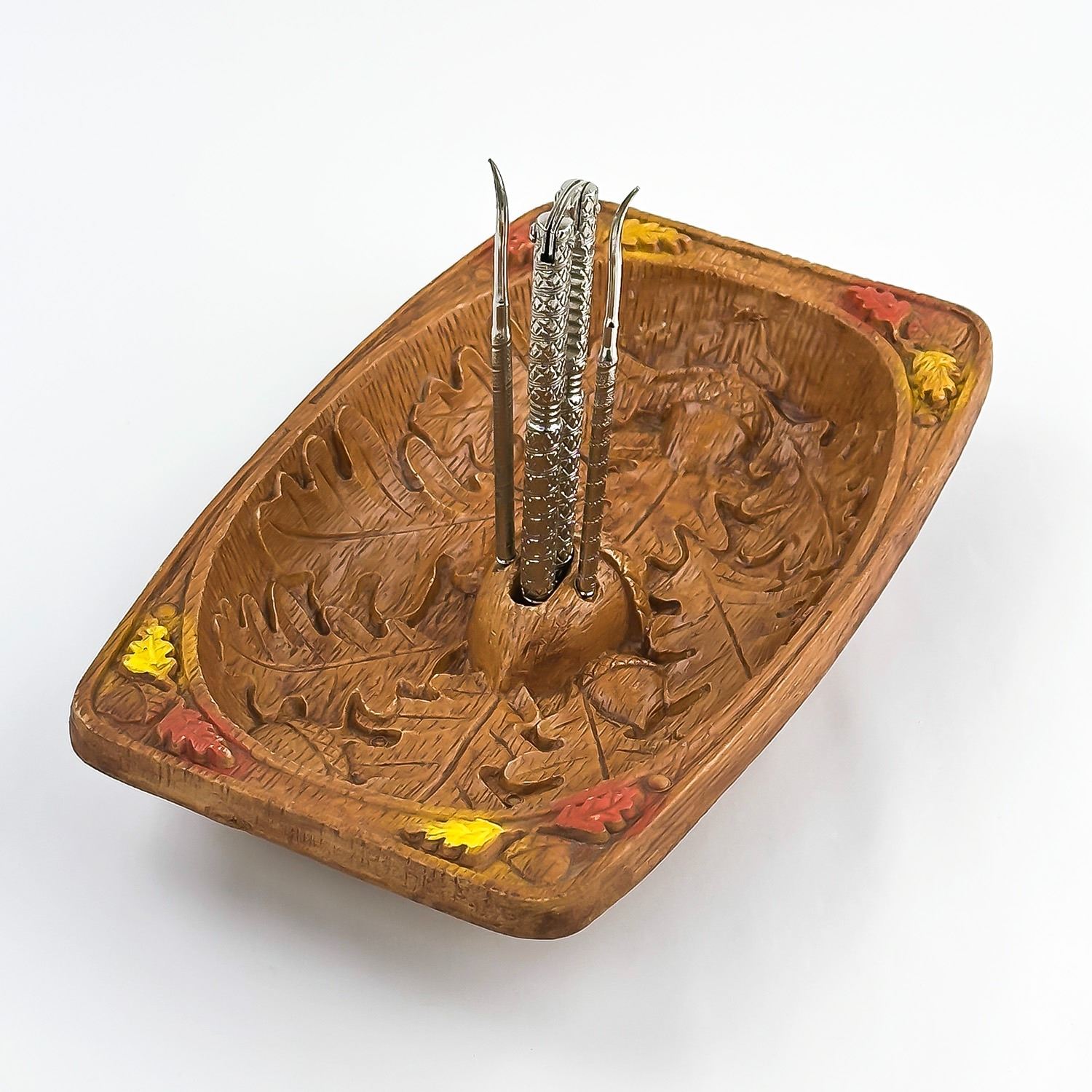#8686 - MOLDED RESIN STYLE PLASTIC NUT BOWL BY MULTI PRODUCTS INC - COMPLETE WITH NUT CRACKER AND PICKS. ACORN THEMED SCULPTURE - HOME DECOR OR BARWARE. MEASURES: 10.25” (26 CM) LONG BY 6.25” (16 CM) WIDE AND SITS 1.5” (4 CM) HIGH