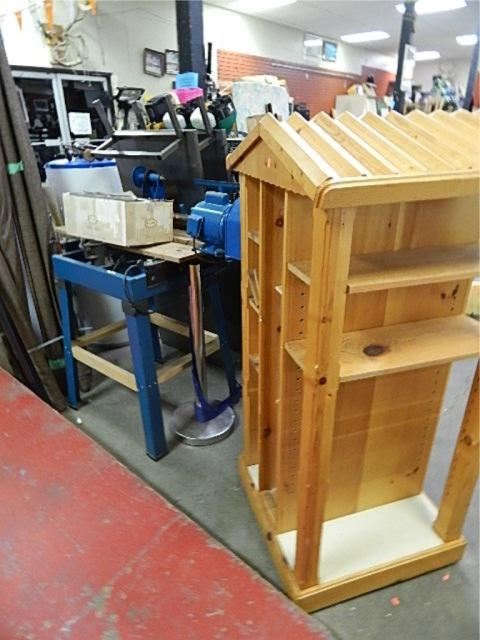 MULTI SHELF DISPLAY UNIT - ALL WOOD WITH PEAKED ROOF - ~60" TALL