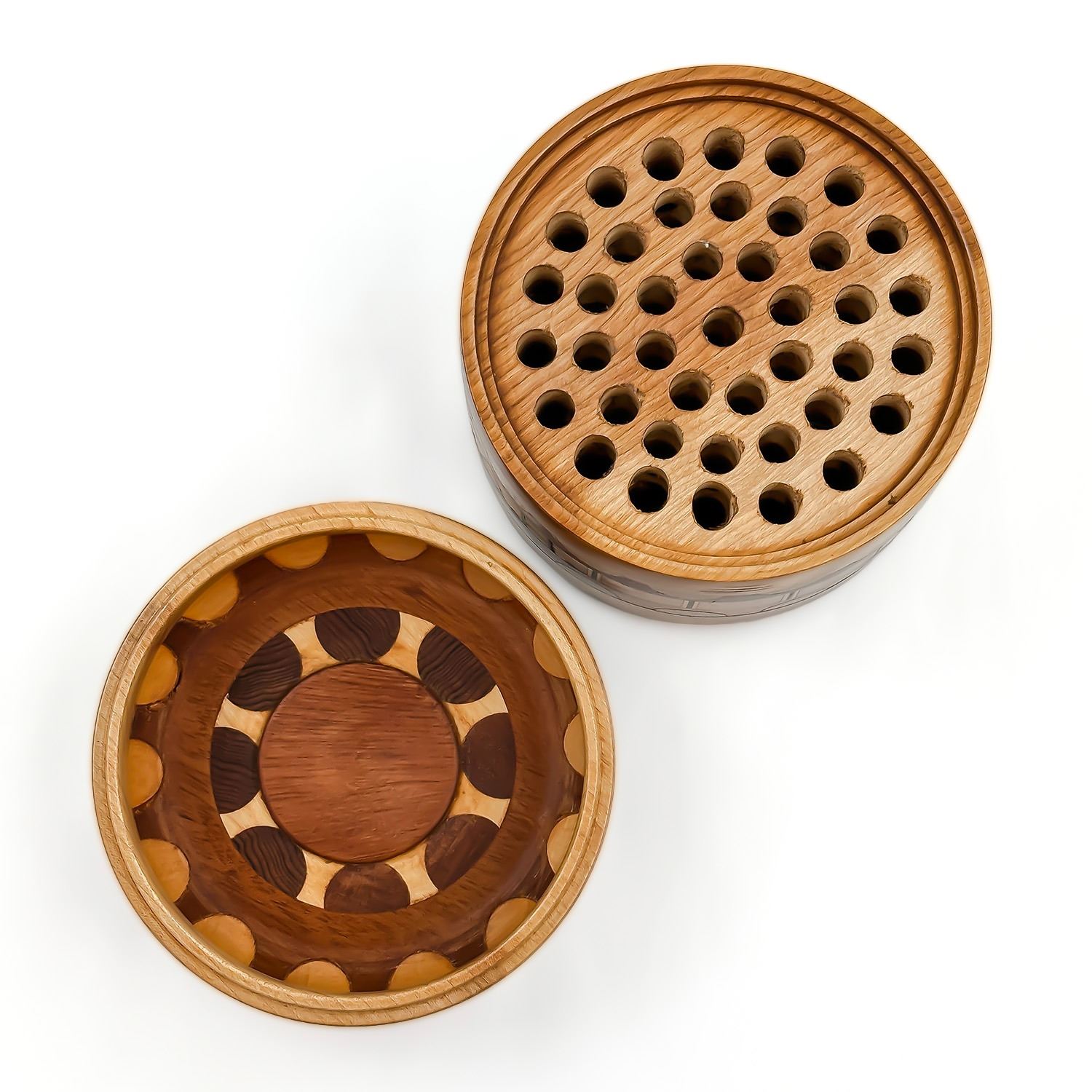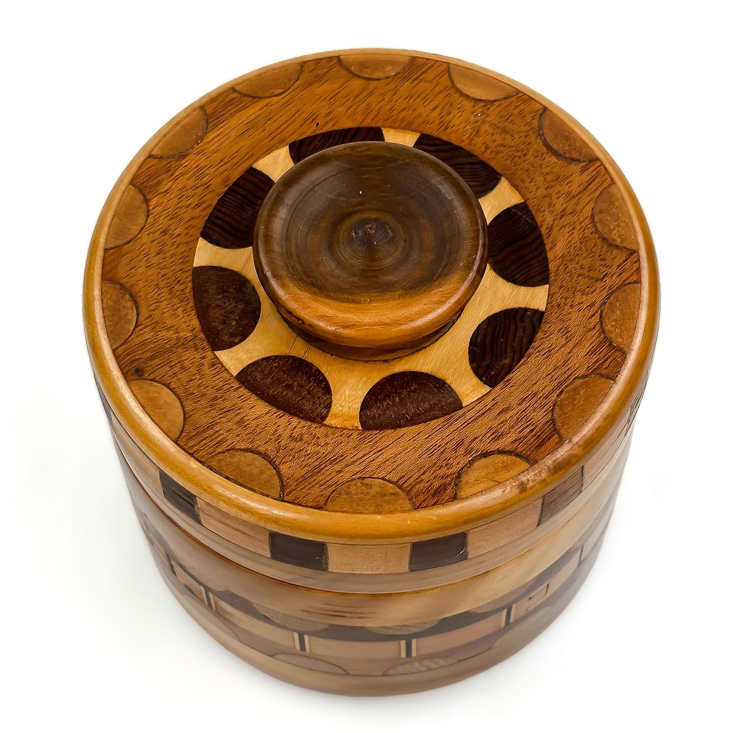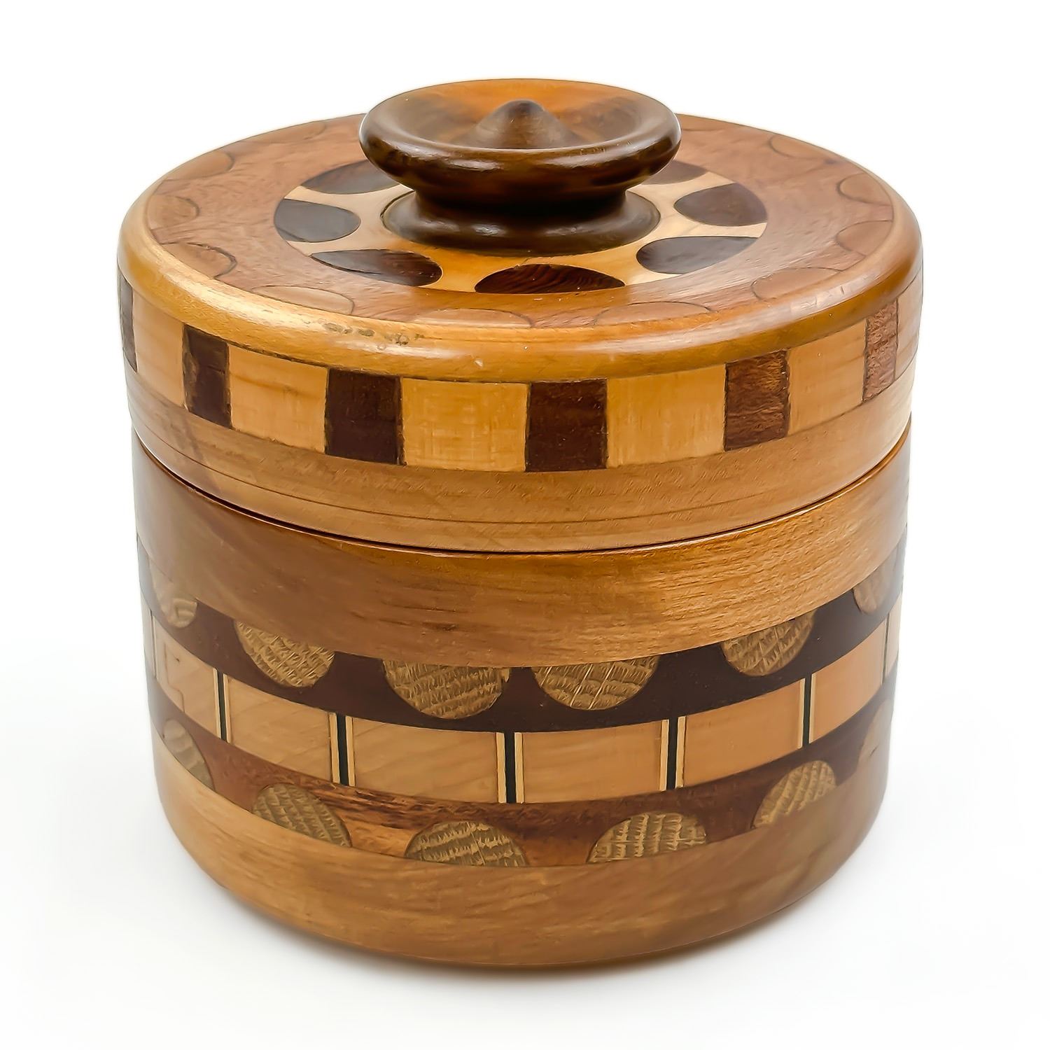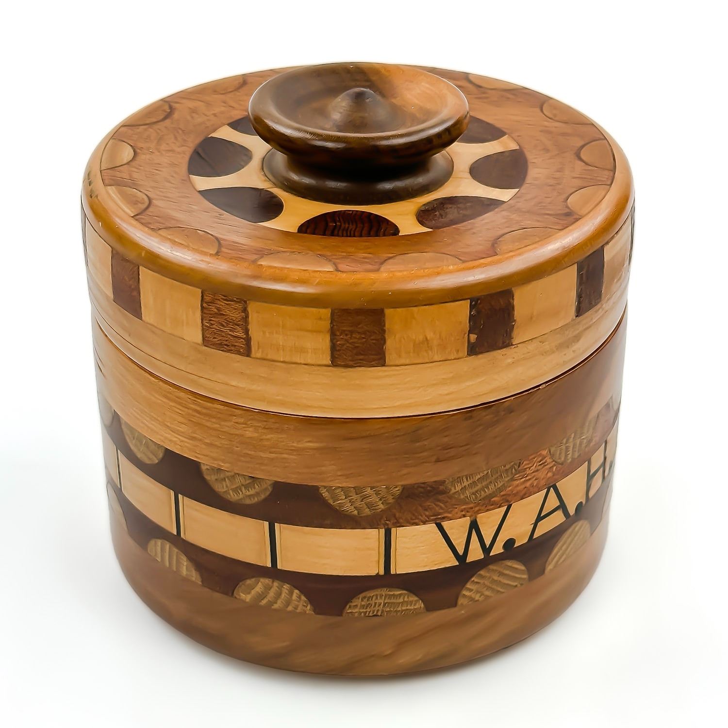 #8045 - THIS PIECE IS HAND CRAFTED FROM SEVERAL DIFFERENT TYPES OF WOOD - DEFINITELY A ONE-OF-A-KIND PIECE AND VERY SKILLFULLY MADE. I BELIEVE THIS WAS INTENDED AS A CIGARETTE HOLDER… BUT NOT 100% SURE. IT IS TOO SHORT FOR PENCILS.THE LETTERS W.A.H.***ITEM(S) LOCATED IN LETHBRIDGE ALBERTA. FREE TRANSPORT TO EDMONTON OFFICE AVAILABLE FOR THIS AUCTION. WORLDWIDE SHIPPING IS AVAILABLE FOR ALL ITEMS